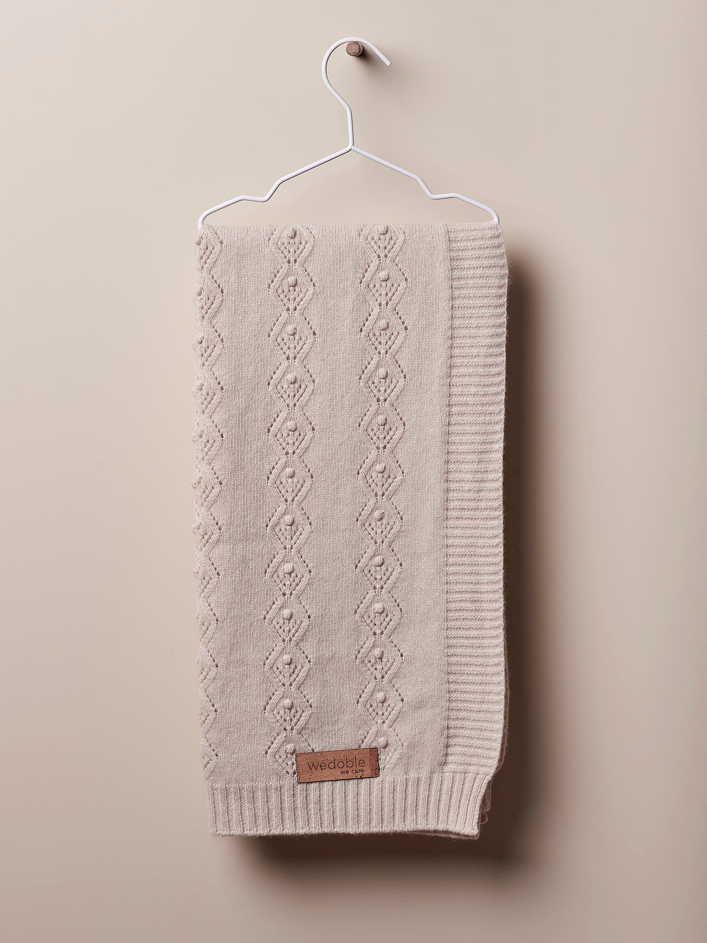 La coperta CHRISTMAS TIME lavorata morbidamente con piccoli pompon che esaltano la bellezza e il carattere unico del capo, in misto lana merino e cashmere, ottima per coccolare il tuo bambino. Realizzato con la tecnologia Wholegarment, questo capo è privo di cuciture per il massimo comfort del tuo bambino. Dimensioni approssimative della coperta: 100 cm per 75 cm.