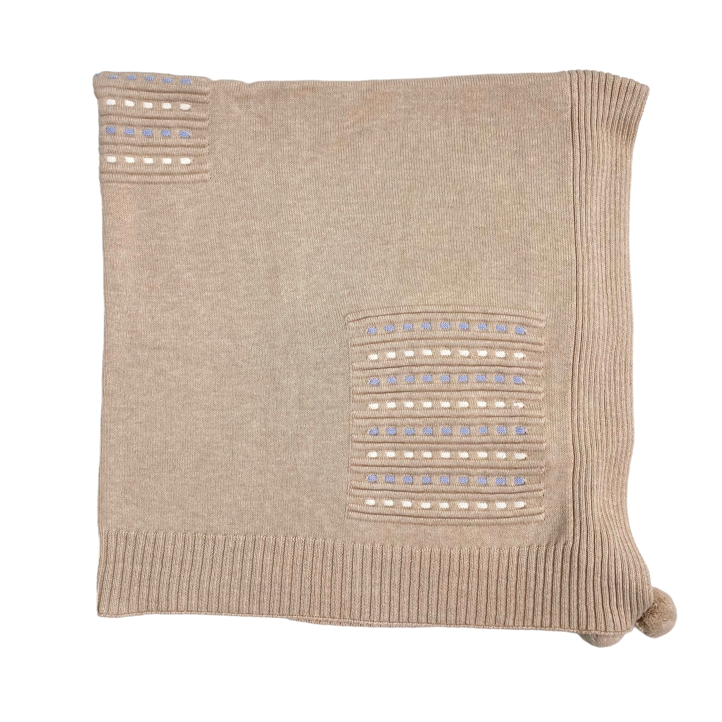 Questa coperta scialle in morbido misto lana è perfetta per avvolgere il tuo neonato con calore e comfort per la sua uscita dalla clinica. Con i dettagli dei pon pon e i ricami, è un'aggiunta elegante alla tua scelta di prodotti per il tuo bambino.