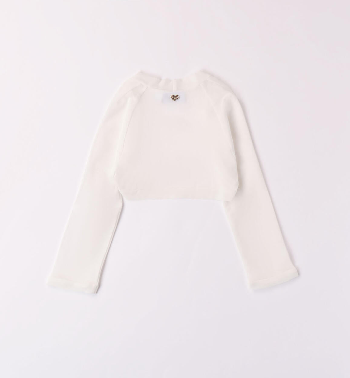 Coprispalle cerimonia bambina Sarabanda realizzato in morbido tessuto trasparente. Vestibilità crop. L'articolo fa parte della collezione S Premium Sarabanda pensata per vestire le cerimonie più formali delle bambine