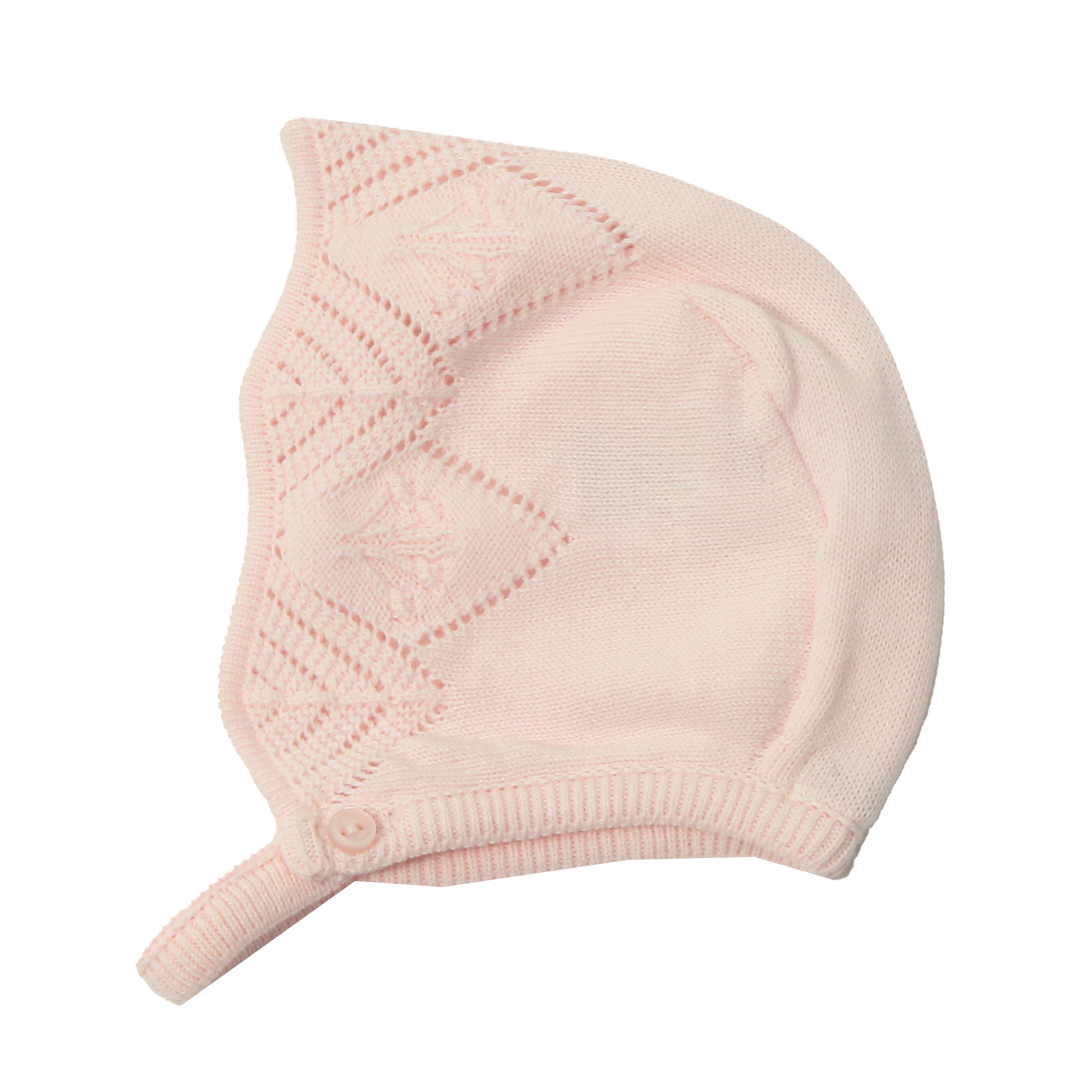 La cuffia in filo di cotone traforata per neonati è l'accessorio perfetto per la nuova arrivata. Realizzata in morbido cotone e dotata di uscita clinica, protegge la testa del tuo bebè con eleganza e delicatezza.