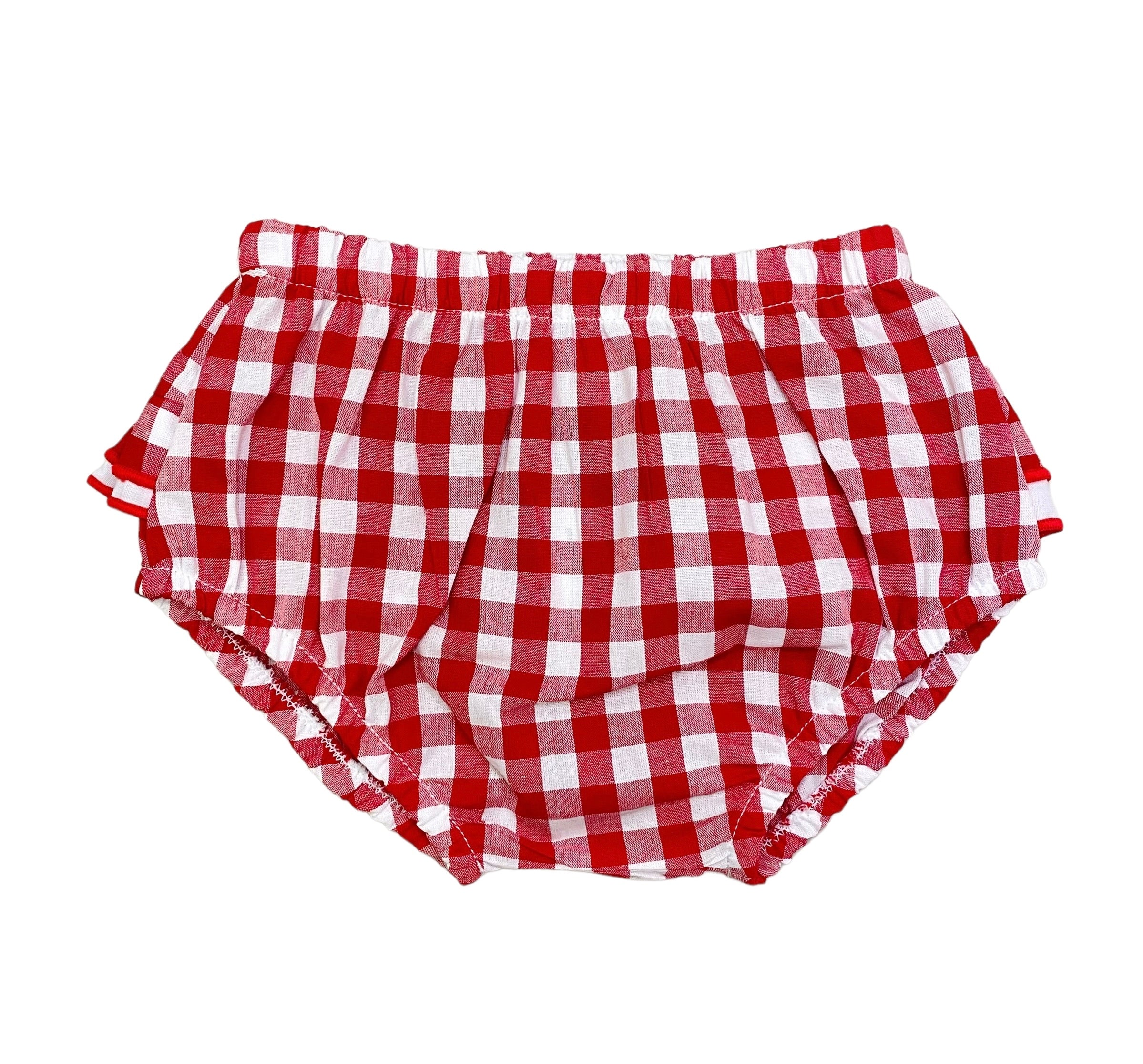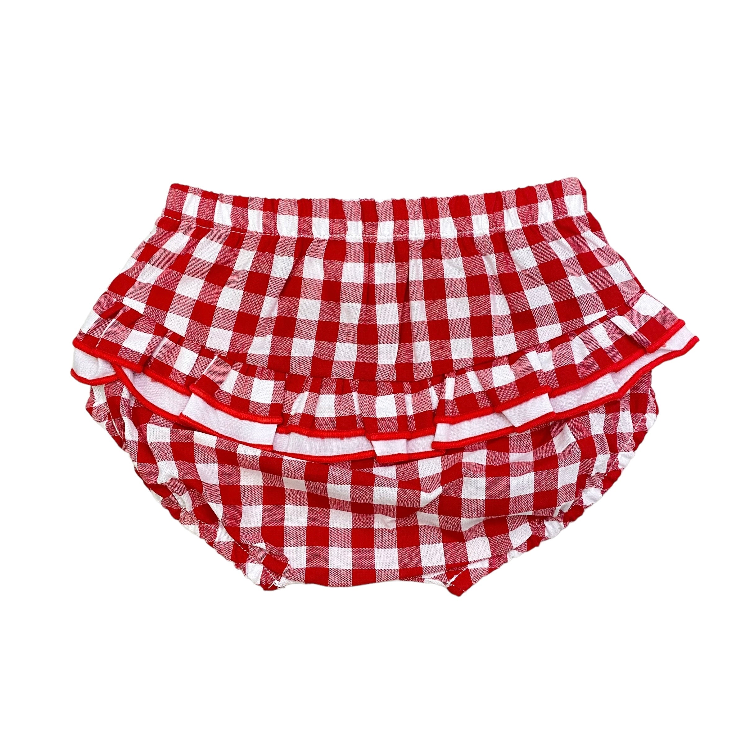 Culotte in cotone a quadretti per neonata, con rouches sul retro. Morbida e comoda, ideale per le prime fasi della vita. Realizzata con materiali di alta qualità, garantendo la massima resistenza e comfort. Il capo perfetto per un'elegante e delicata aggiunta al guardaroba della tua piccola.