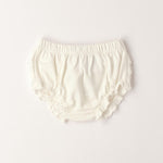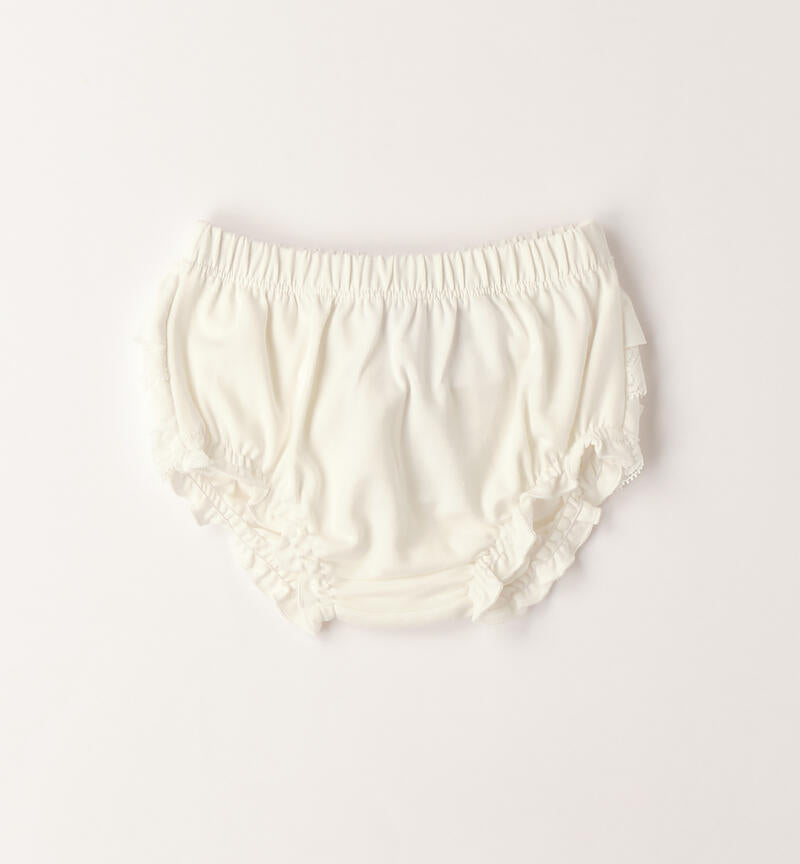Culotte per neonata Minibanda realizzata in jersey stretch di cotone con ruches in trina. Scegliendo i nostri prodotti in cotone, sostieni l'impegno di Minibanda nella missione Better Cotton. La fornitura di questo prodotto avviene tramite un sistema di bilancio di massa e potrebbe non contenere Better Cotton