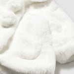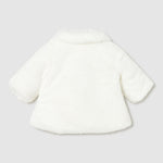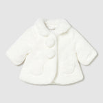 Capotto manica lunga per neonata. Colletto bebè. Chiusura con bottoni nascosti che garantirà un vestibilità rapida. Tessuto esterno in morbido pellicciotto. Fodera interna imbottita per un maggiore isolamento termico. Tasche funzionali nella parte anteriore. Elementi decorativi: pompon.