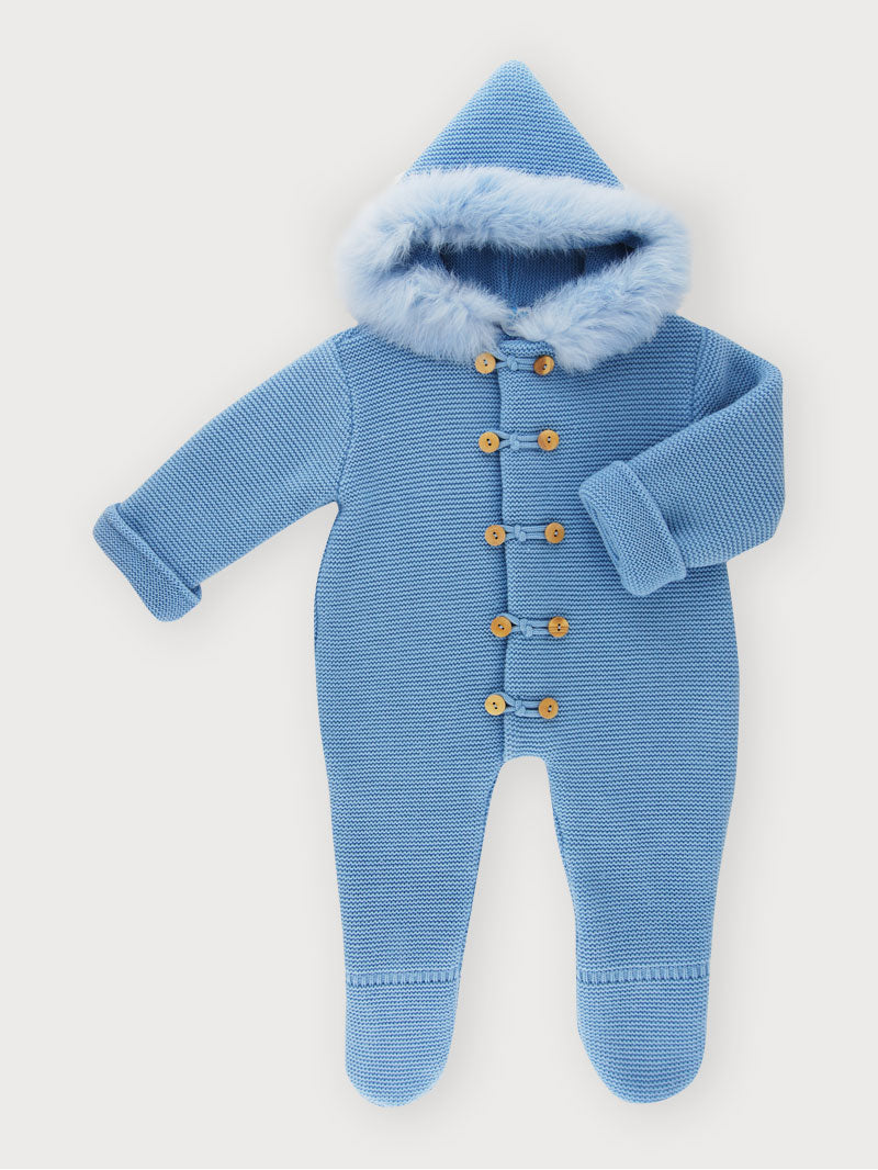 Eskimo-Overall aus hypoallergenem Acrylgewebe mit Fellkapuze.