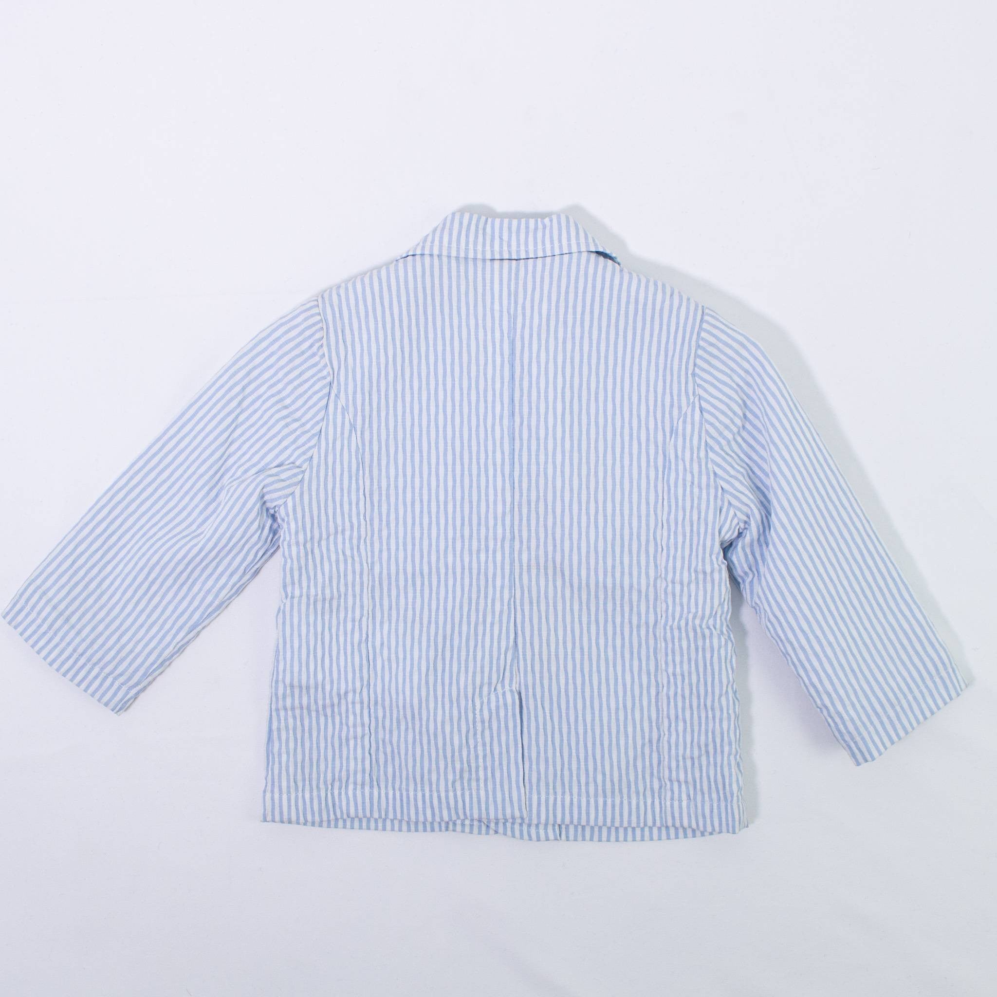 Elegante hellblau gestreifte Baumwolljacke mit Fake-Taschen auf der Vorderseite und integrierter Clutch mit Knopfverschluss