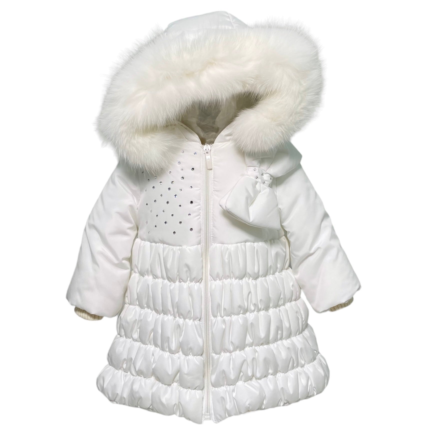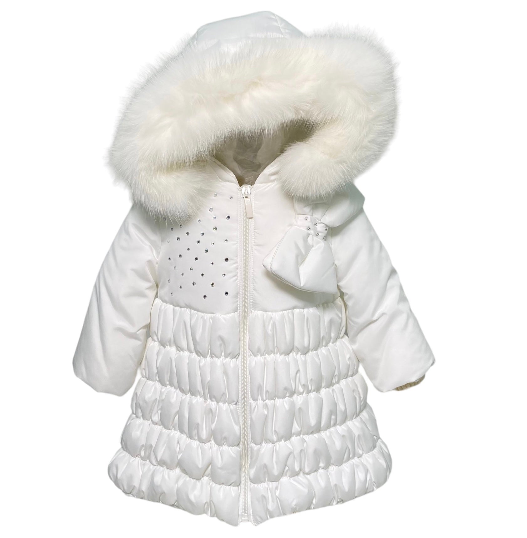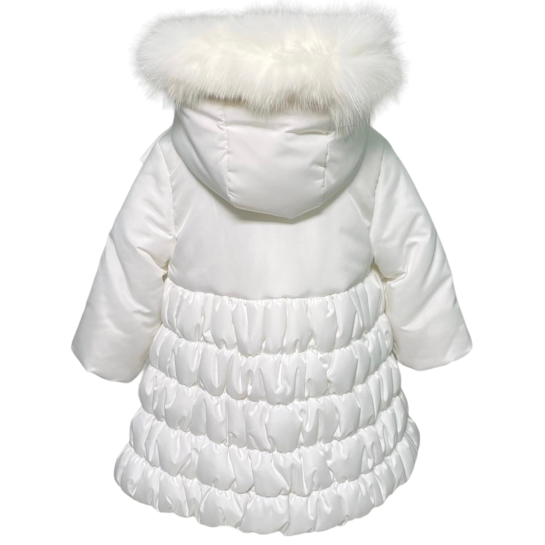 Kapuzenjacke mit abnehmbarem Fell, einfarbig in Weiß.