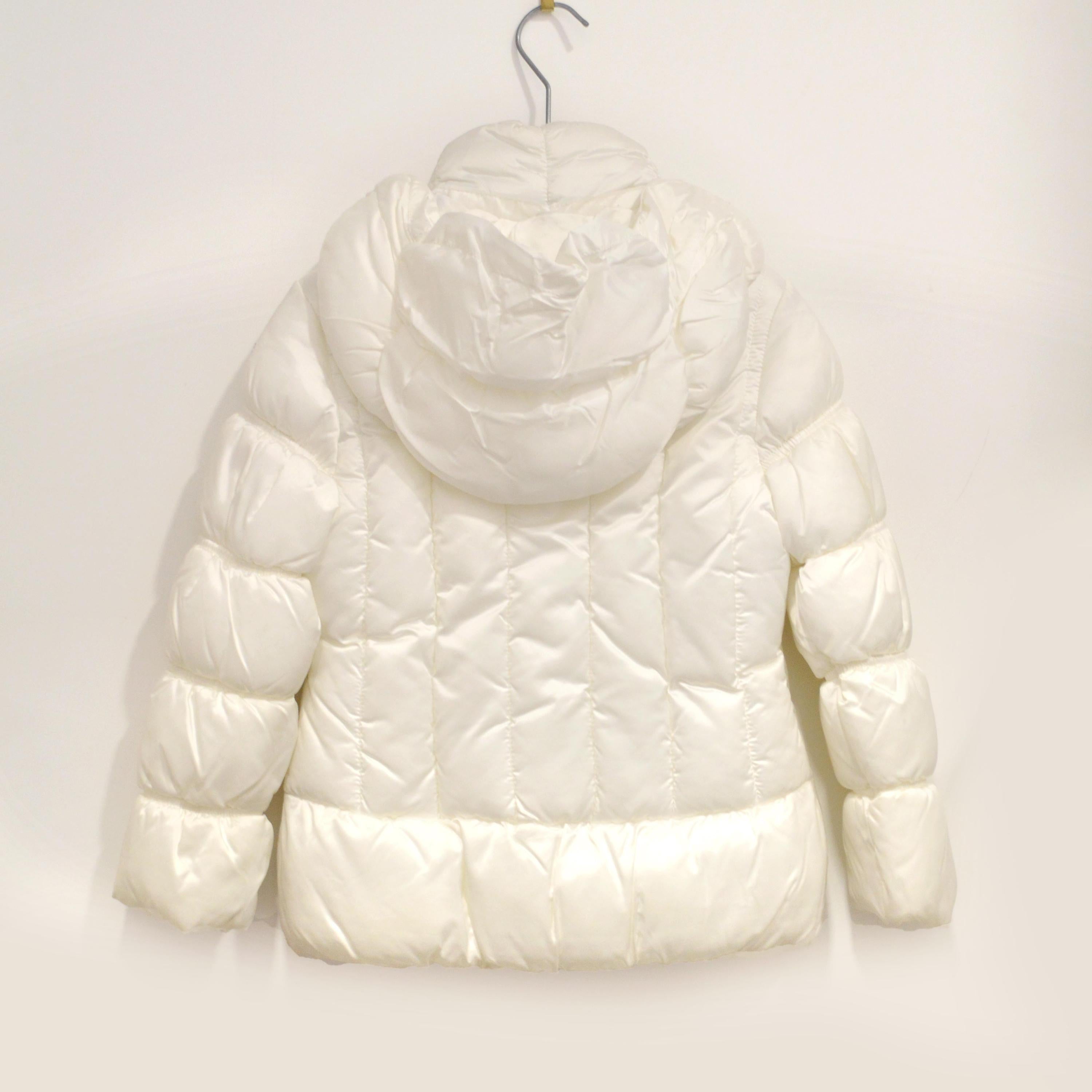 Solide weiße Steppjacke mit abnehmbarer Kapuze.
