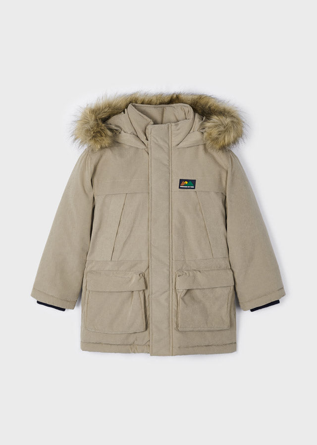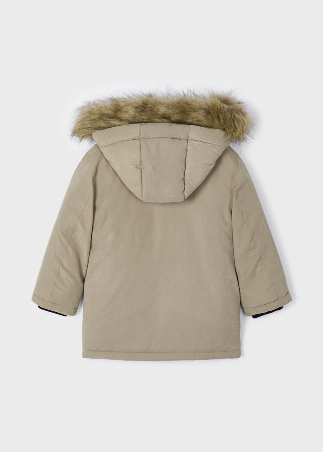 Wattierte Jacke im Parka-Stil mit Kapuze.