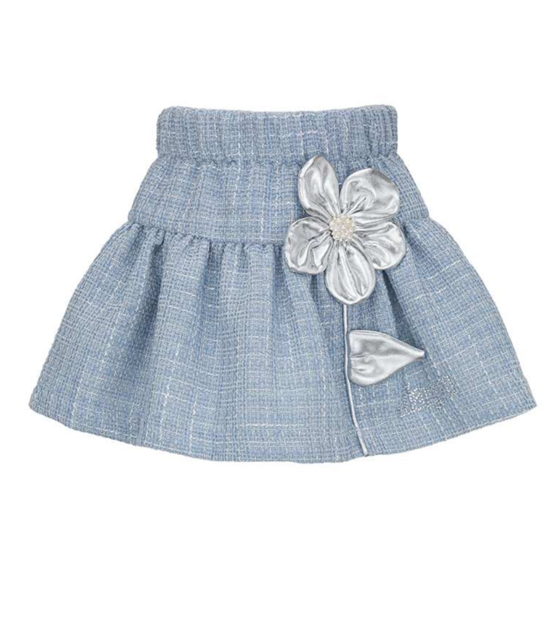 Questa gonna ampia in velluto per bambina unisce comfort e stile grazie all'elastico in vita, che garantisce una vestibilità perfetta. Il design a ruota crea un effetto volume elegante, mentre l'applicazione floreale sul davanti aggiunge un tocco di raffinatezza e modernità, ideale per occasioni speciali o look di alta moda per bambini.