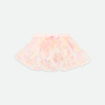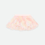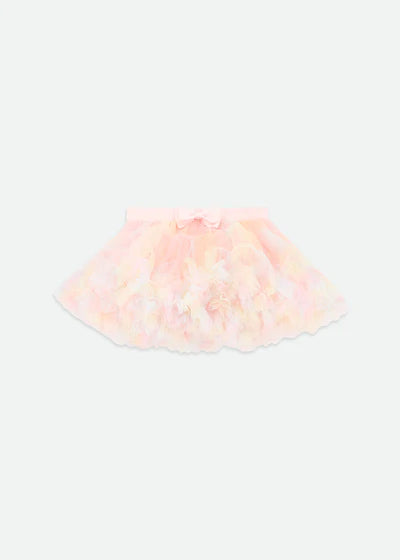 Angel's Face Ikonisches Tutu für Babys. Der Rock ist in einem weichen, elastischen Bund gerafft und vollständig mit einer bequemen Baumwollmischung gefüttert. Schichten aus weichem Tüll und Volants sorgen für Volumen und Sprungkraft, ergänzt durch unsere charakteristische goldene herzförmige Schleife und unseren Anhänger in der Taille.