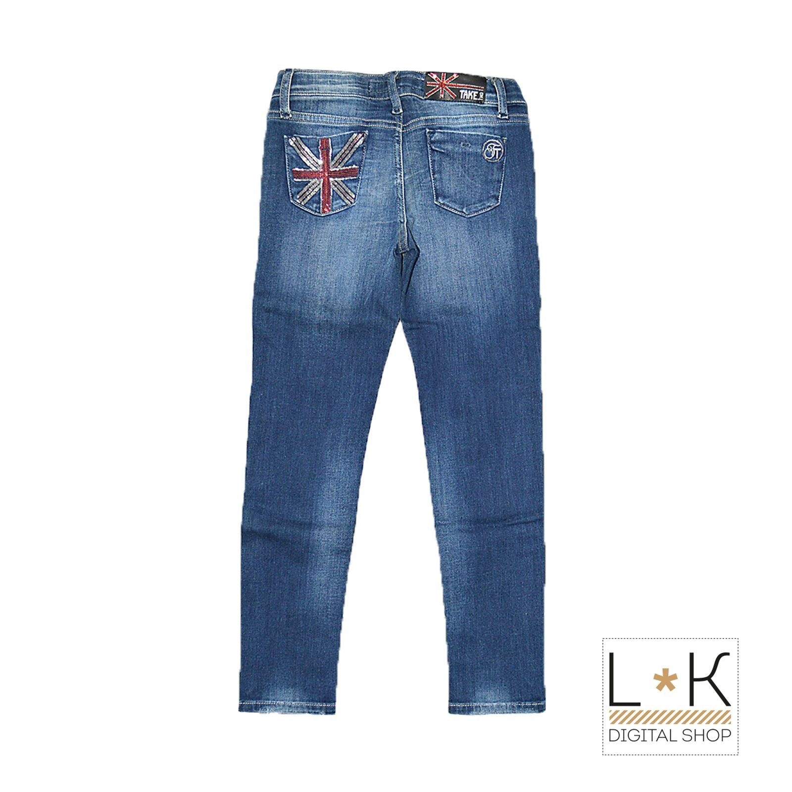 Warme Denim-Baumwolljeans mit Pailletten auf der Gesäßtasche und elastischem Bund