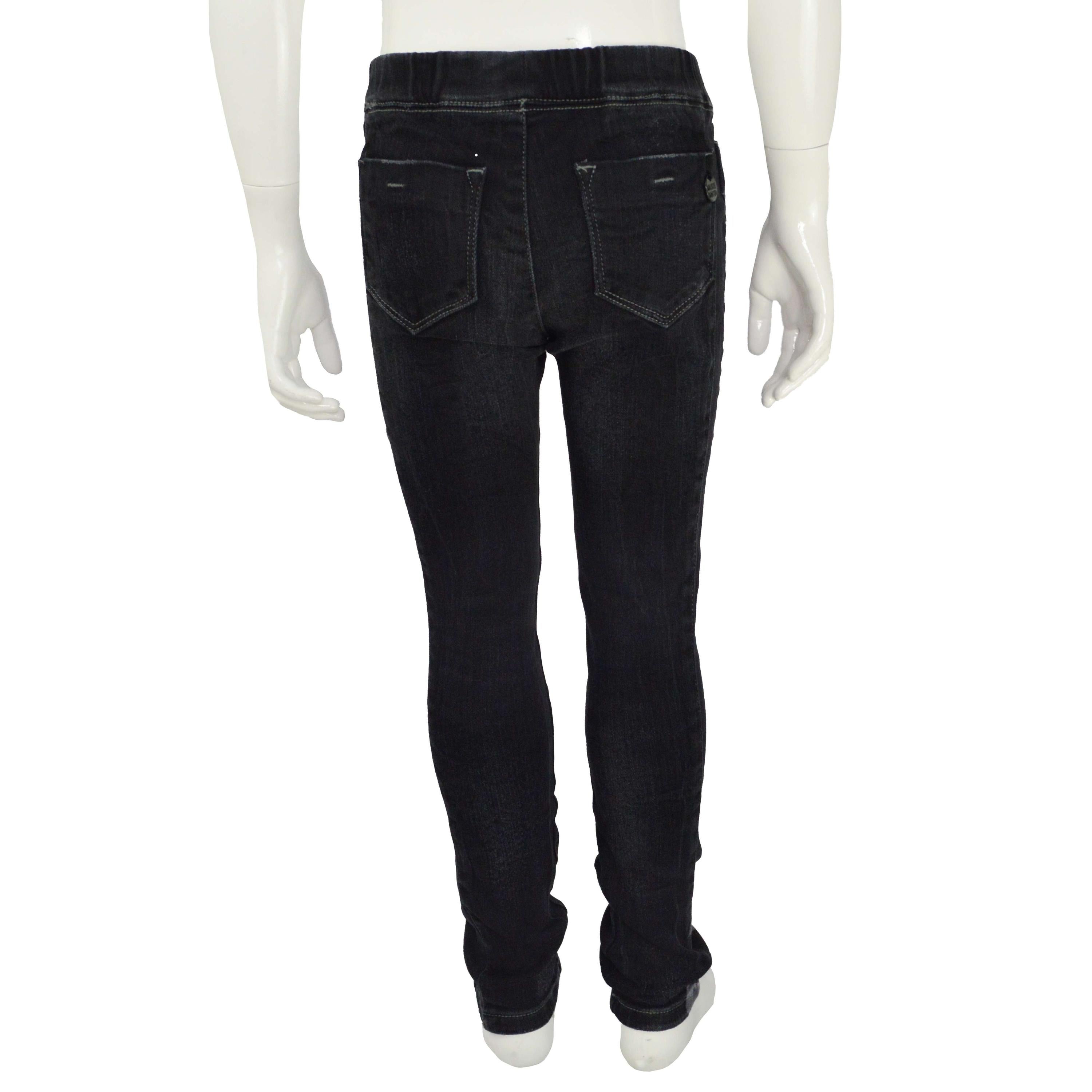 Schwarze Jeans aus warmer Stretch-Baumwolle mit Fake-Taschen vorne und elastischem Bund.