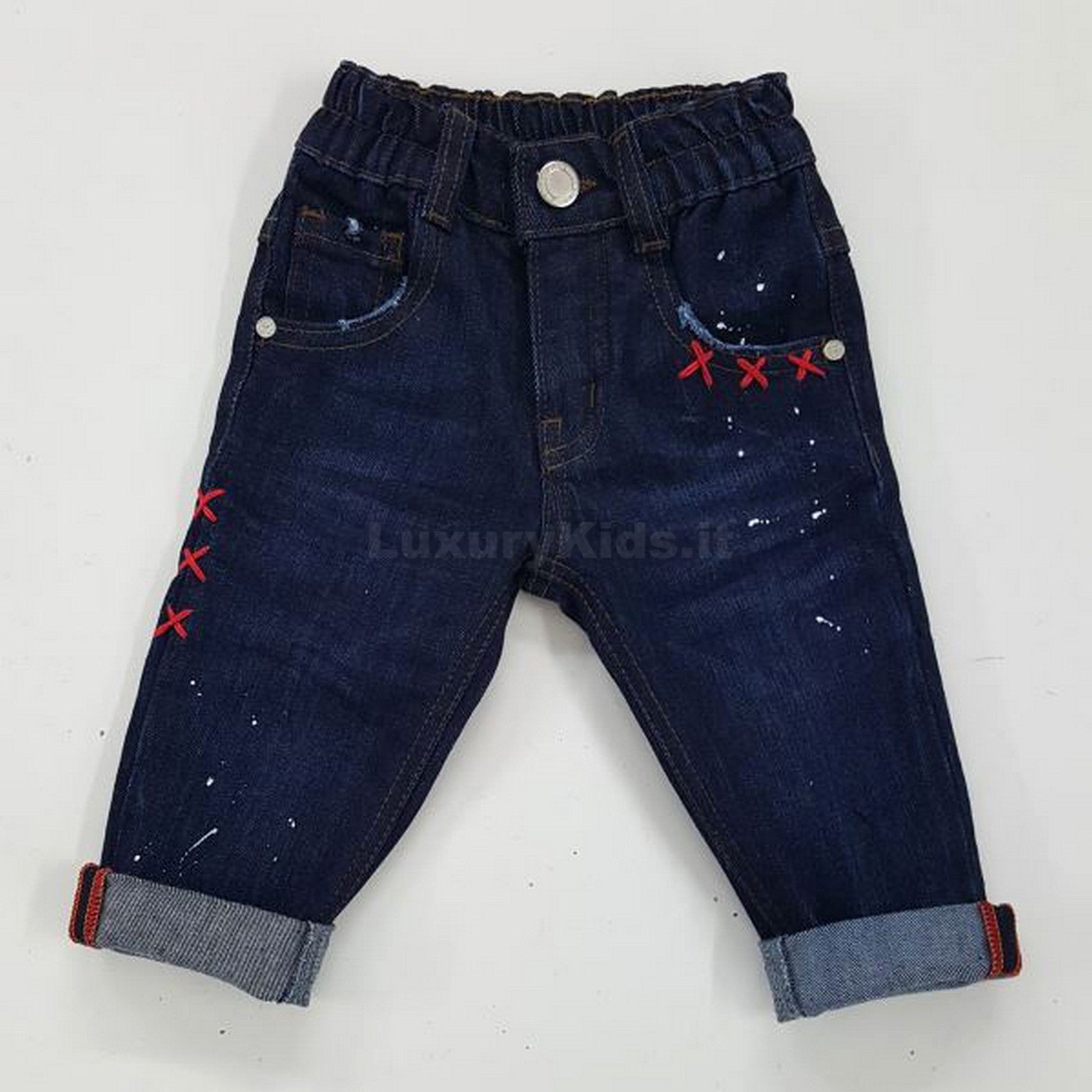 Jeans Scuro in Caldo Cotone Denim con Macchie di Pittura per Bambino Manuell&Frank MF1015N - MANUELL&FRANK - LuxuryKids