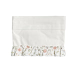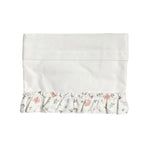Kinderwagenlaken aus Baumwolle, einfarbig, cremefarben, mit floraler Rüschenapplikation auf der Vorderseite.