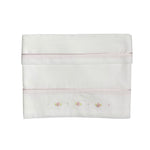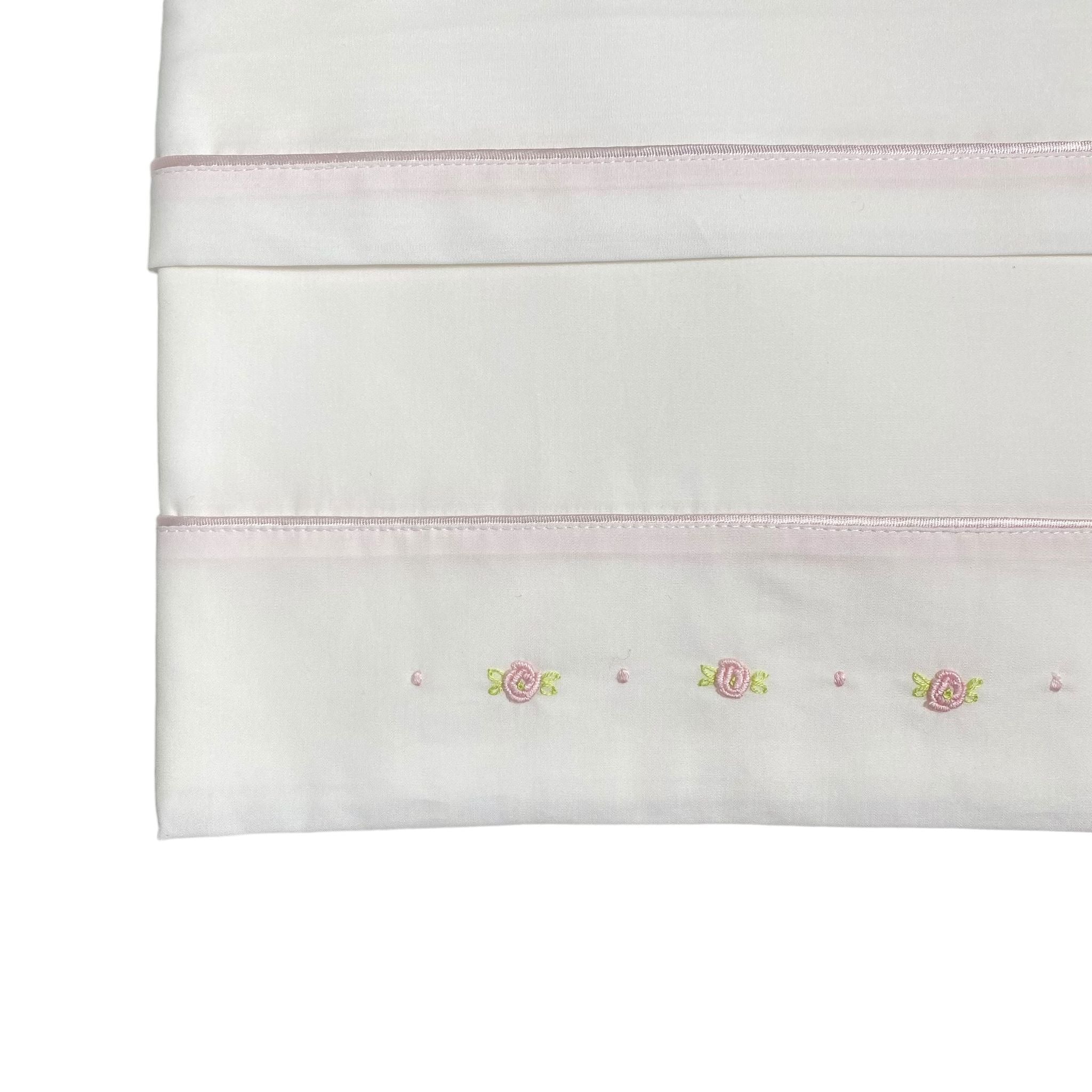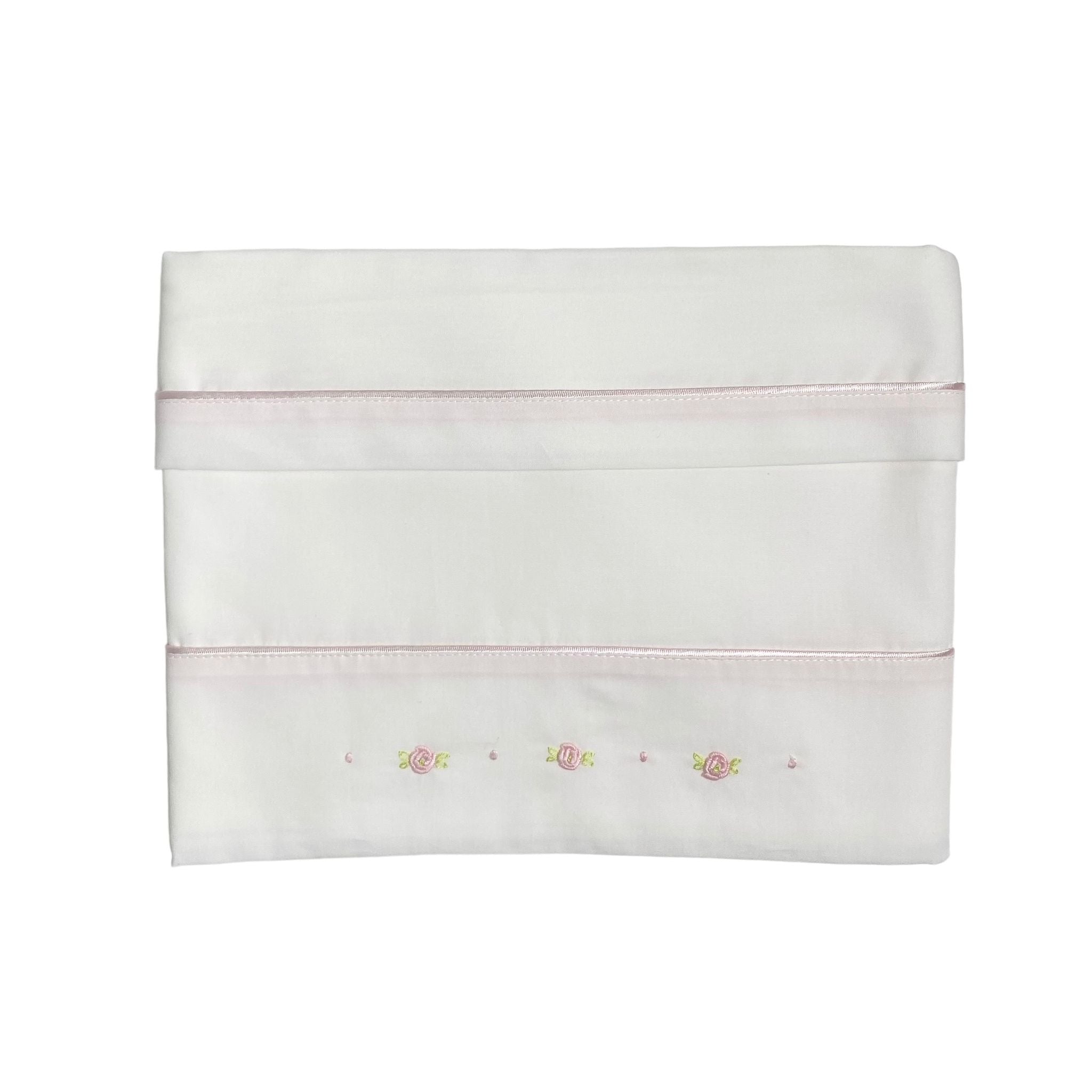 Elegante lenzuolino per carrozzina in cotone ricamato per neonate. Realizzato in Italia, perfetto per l'uscita clinica e l'uso quotidiano. Semplice e raffinato, aggiunge un tocco di stile alla carrozzina della tua bambina. 100% cotone per il massimo comfort e morbidezza.