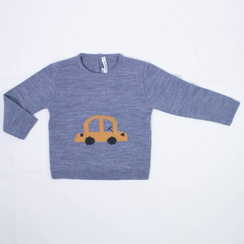 Warmer Baumwollpullover mit Auto auf der Vorderseite und zwei Knöpfen auf der Rückseite. Bequem und perfekt für jeden Anlass