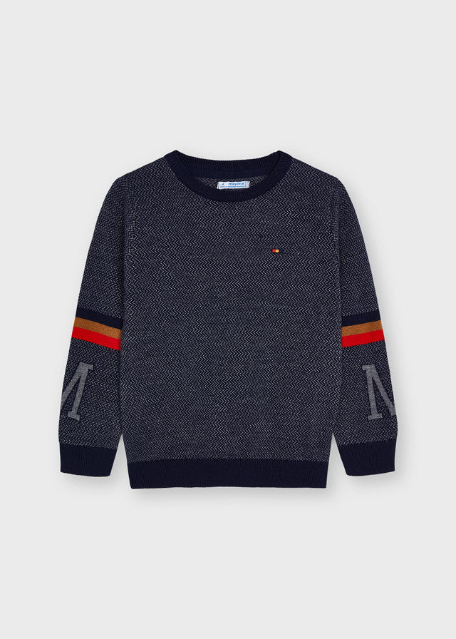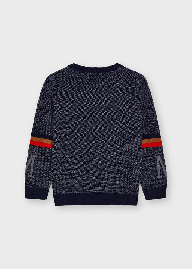 Pullover mit Rundhalsausschnitt aus Wollmischung mit Fischgrätenmuster.
