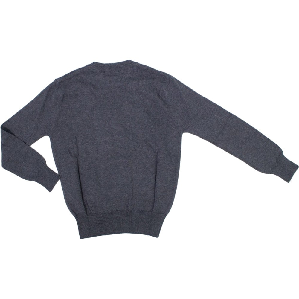 Grauer, einfarbiger Pullover aus Wollmischung mit Logo-Stickerei auf der Brust