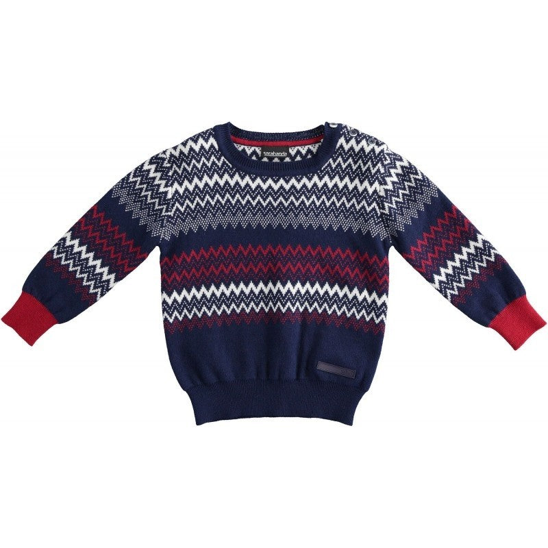 Pullover aus gemischter Wolle mit Fischgrätenmuster in Weiß und Rot als Kontrast. Elegant perfekt für jeden Anlass. Misst Neugeborene mit Knöpfen auf der Schulter angenehm zu tragen. Garantiert Sicherheit, Qualität und Langlebigkeit.