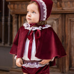 Questa mantella in velluto per bambina unisce eleganza e praticità con una chiusura a laccetti che garantisce una vestibilità regolabile e confortevole. Perfetta per completare outfit raffinati, offre un tocco di classe e morbidezza ideale per le occasioni speciali, mantenendo la piccola avvolta in un tessuto pregiato e piacevole al tatto.