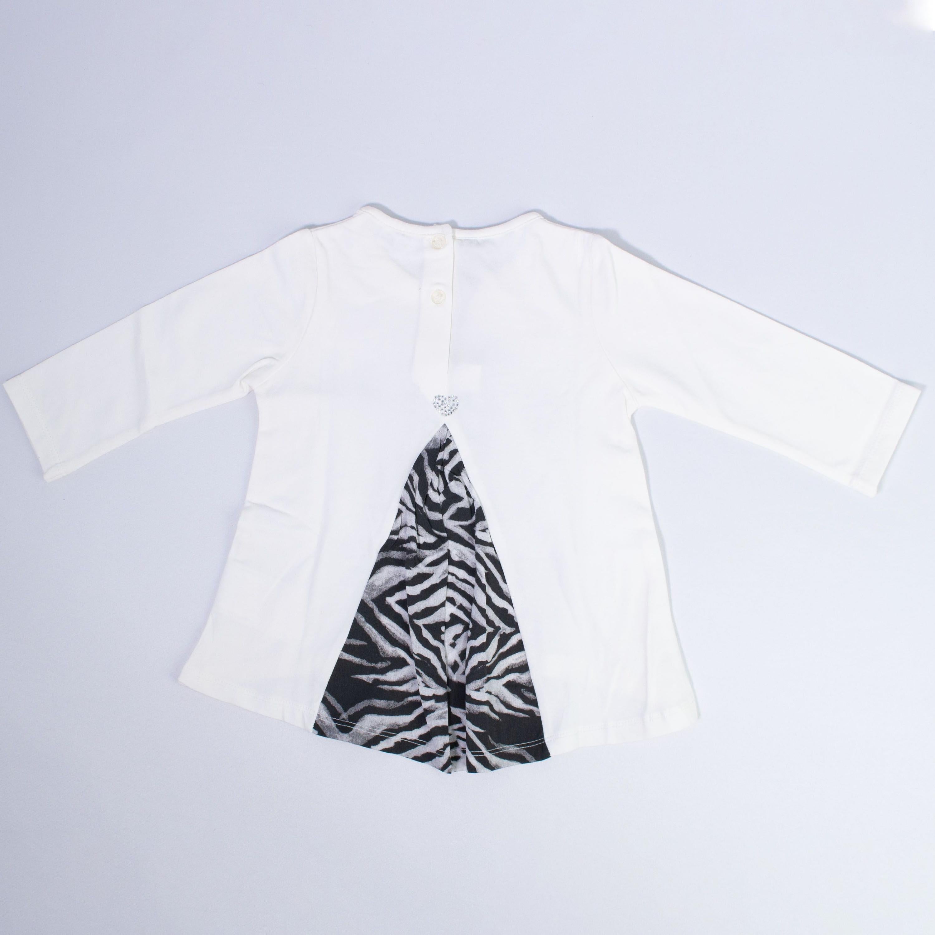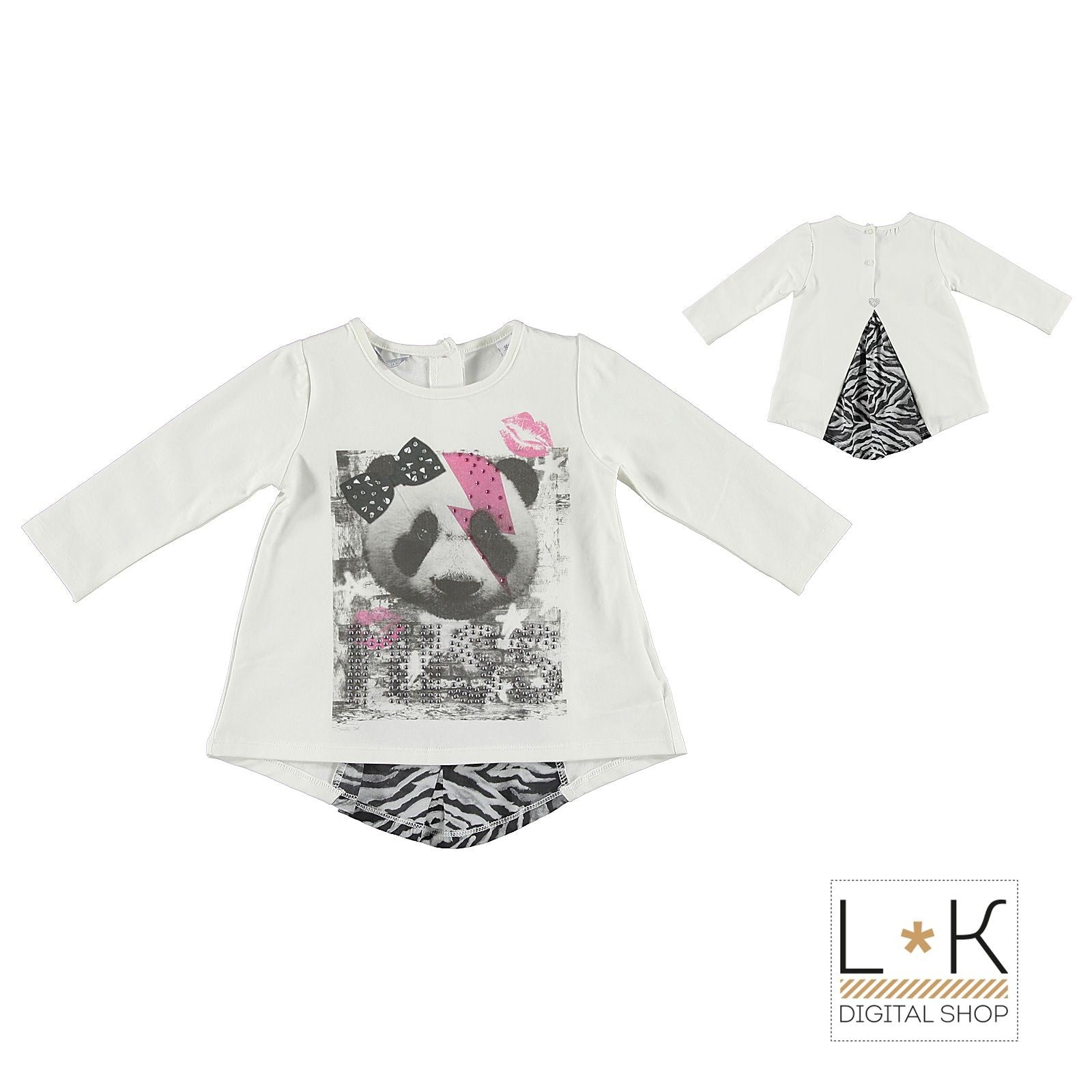 Maxi-Pullover aus warmweißer Baumwolle mit Print und Strassapplikationen auf der Vorderseite