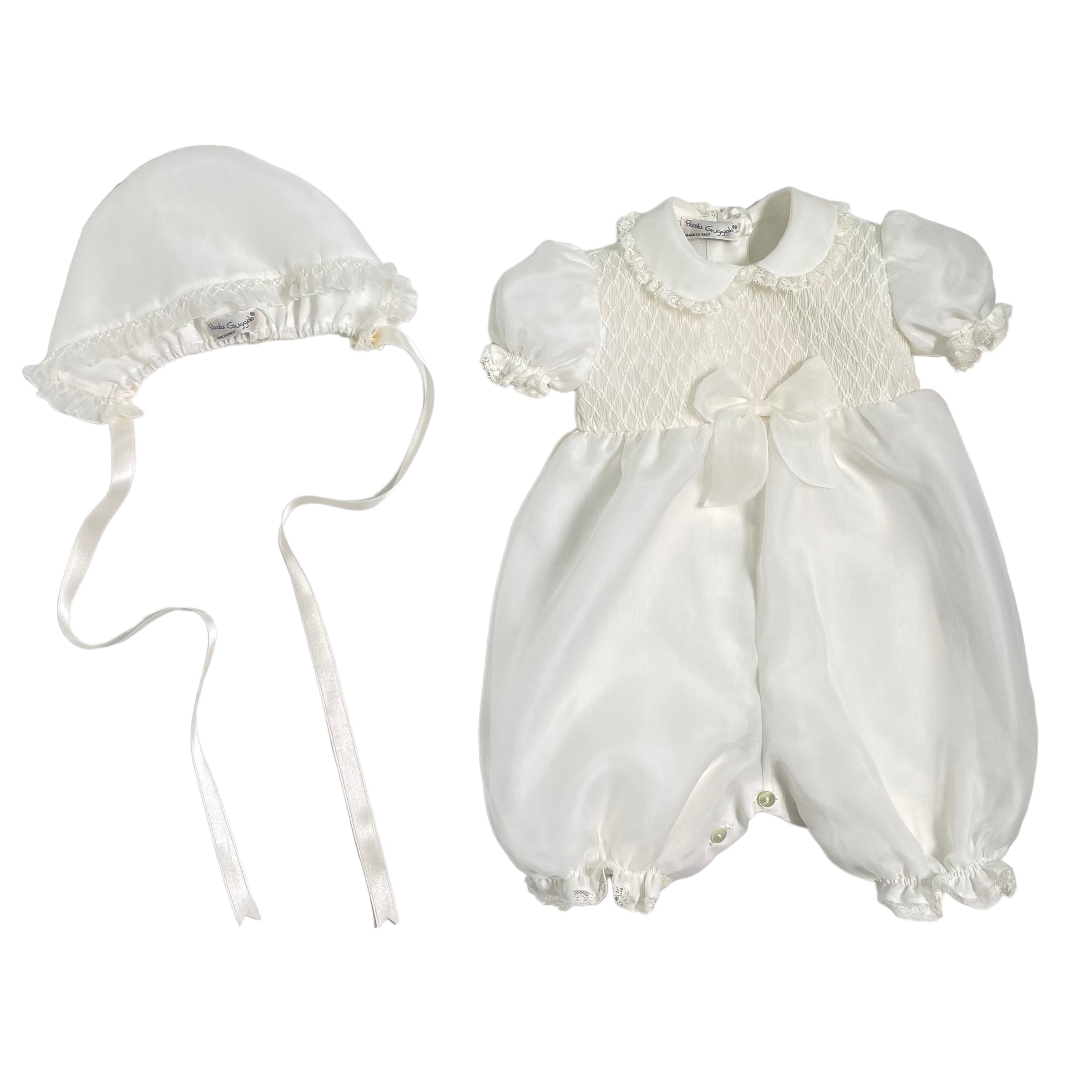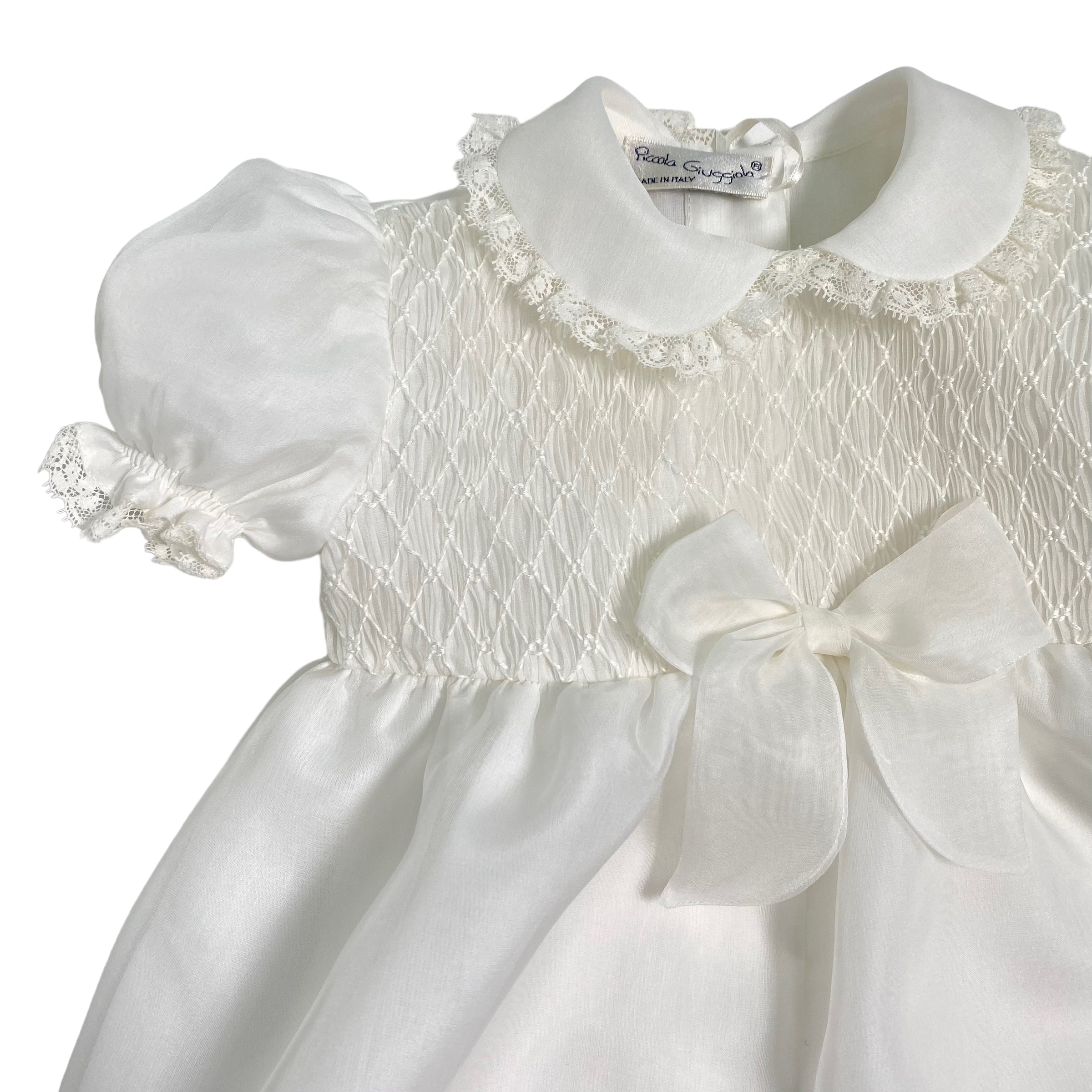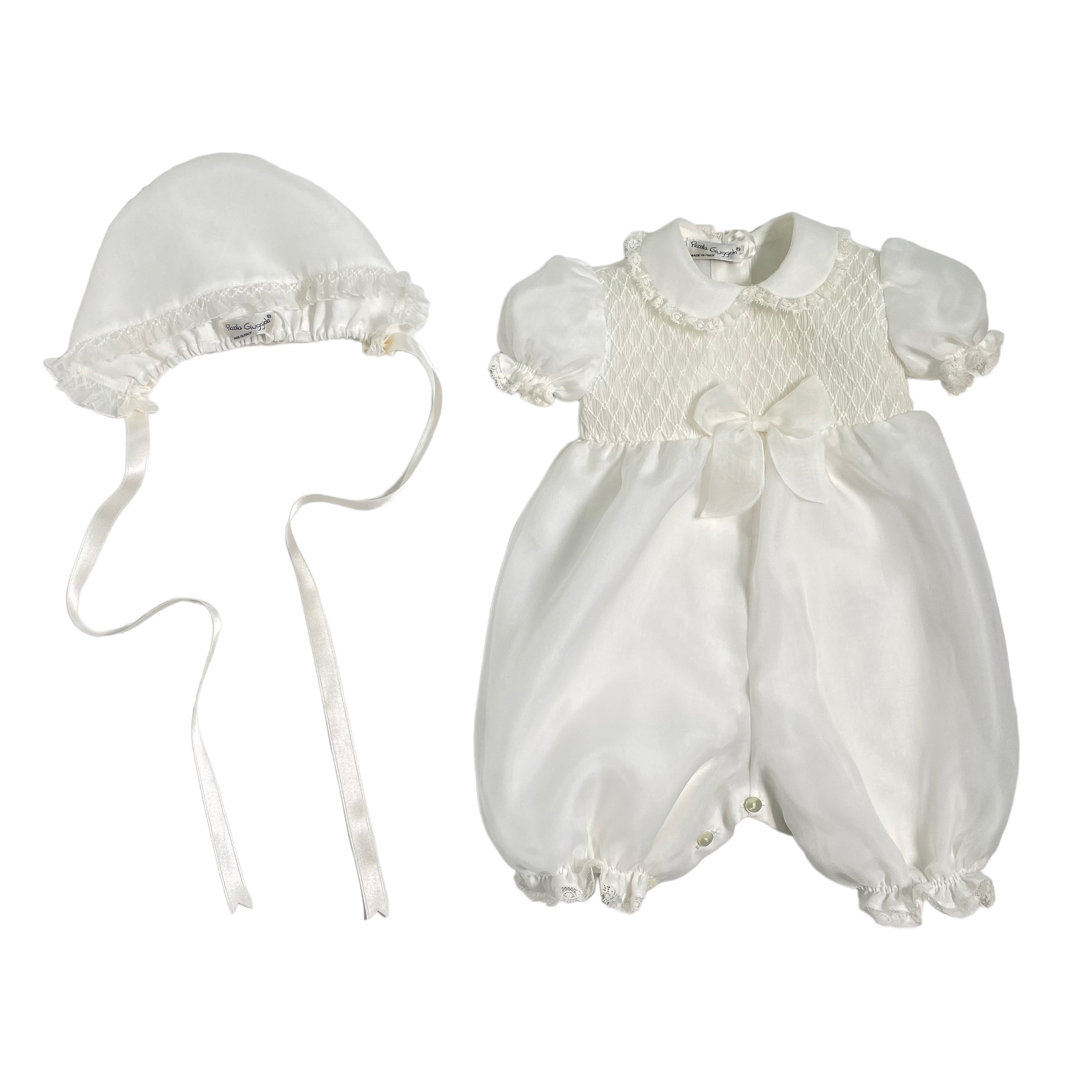 Pagliaccetto Battesimale In Organdis Di Seta Avorio Neonata PICCOLA GIUGGIOLA PALERMO - PICCOLA GIUGGIOLA - Luxury Kids