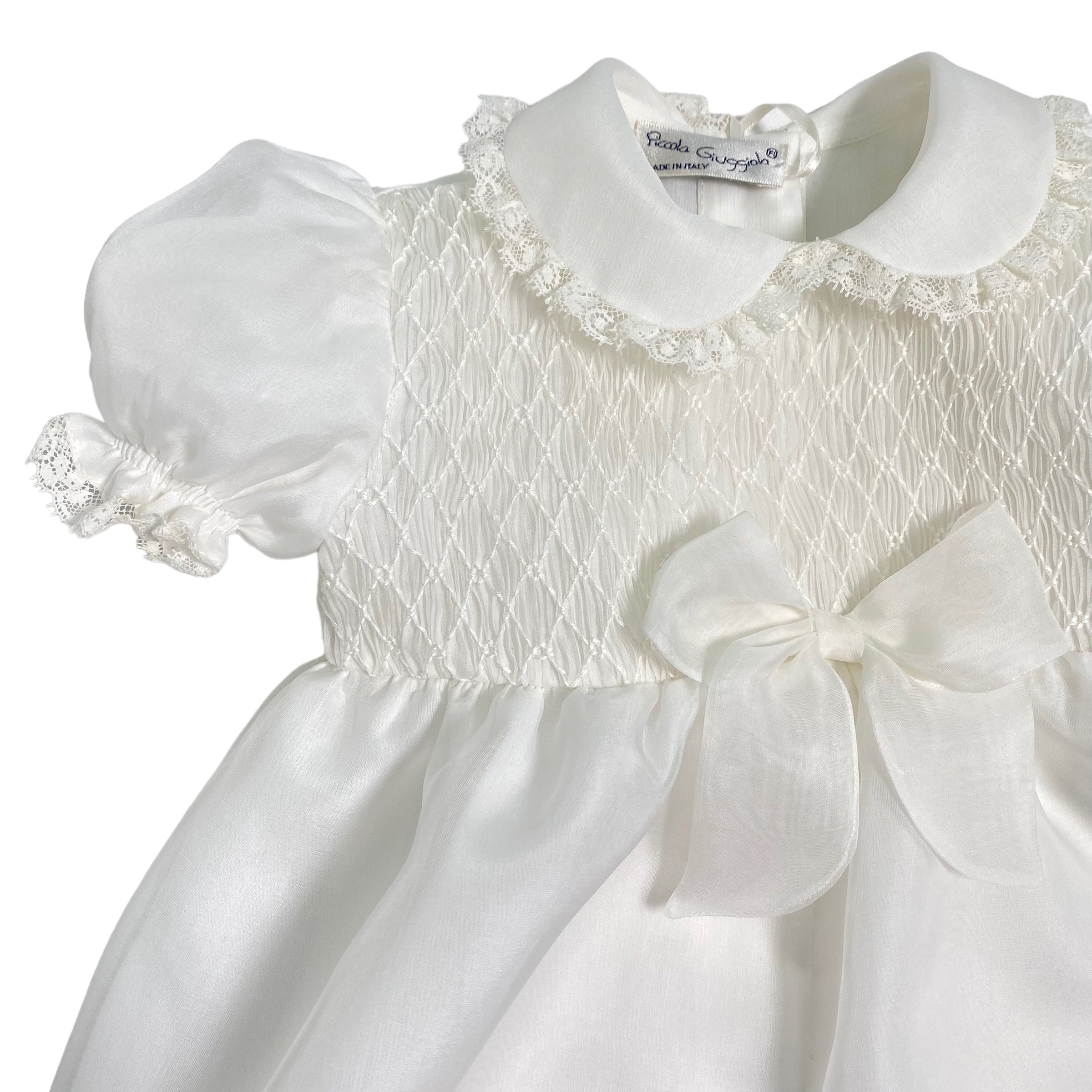 Taufstrampler aus elfenbeinfarbenem Organdis-Seidenbaby für Mädchen PICCOLA GIUGGIOLA PALERMO