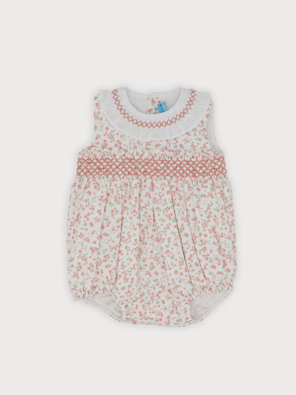 Esplora l'eleganza e la moda della tua bambina con il pagliaccetto in cotone floreale Sardòn. Il tessuto floreale, il collo rouché e il punto smoke sul davanti lo rendono un capo raffinato e alla moda. Inoltre, il cotone lo rende confortevole per la pelle delicata della tua neonata.