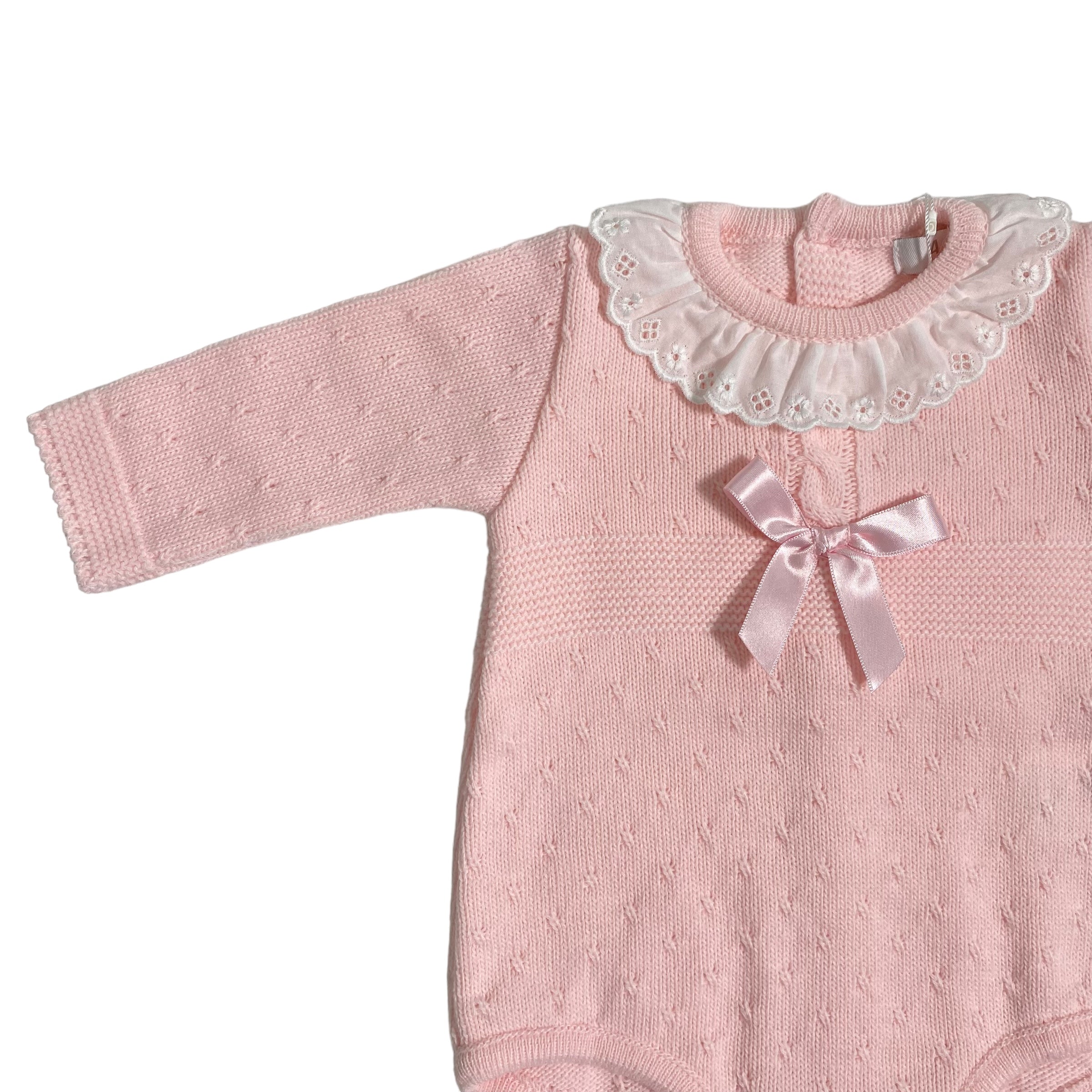 Il Pagliaccetto in Tessuto Anallergico Acrilico Neonata A&J 200 è perfetto per la tua neonata, grazie al morbido tessuto anallergico in acrilico e al colletto con rouches. Ideale per l'uscita clinica, con delicata lavorazione a trecce e un grazioso fiocco in raso.