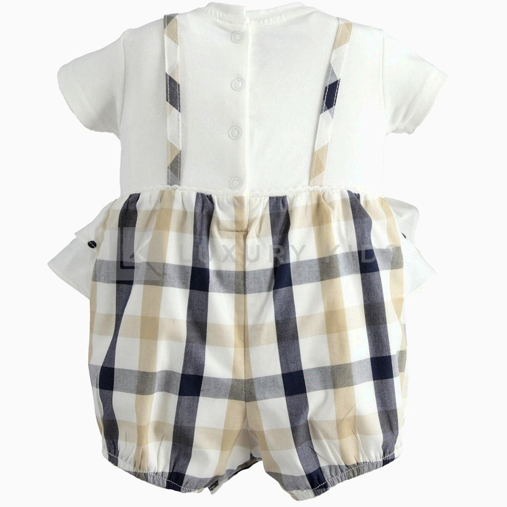 Whole Short Strampler aus Baumwolle mit creme/beige/blauem Karomuster