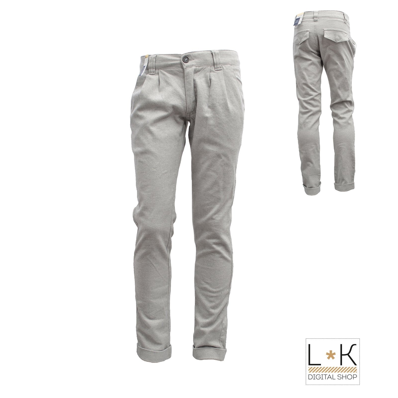 Elegante Hose aus einfarbig grauer Baumwolle mit Stift- und Amerikataschen