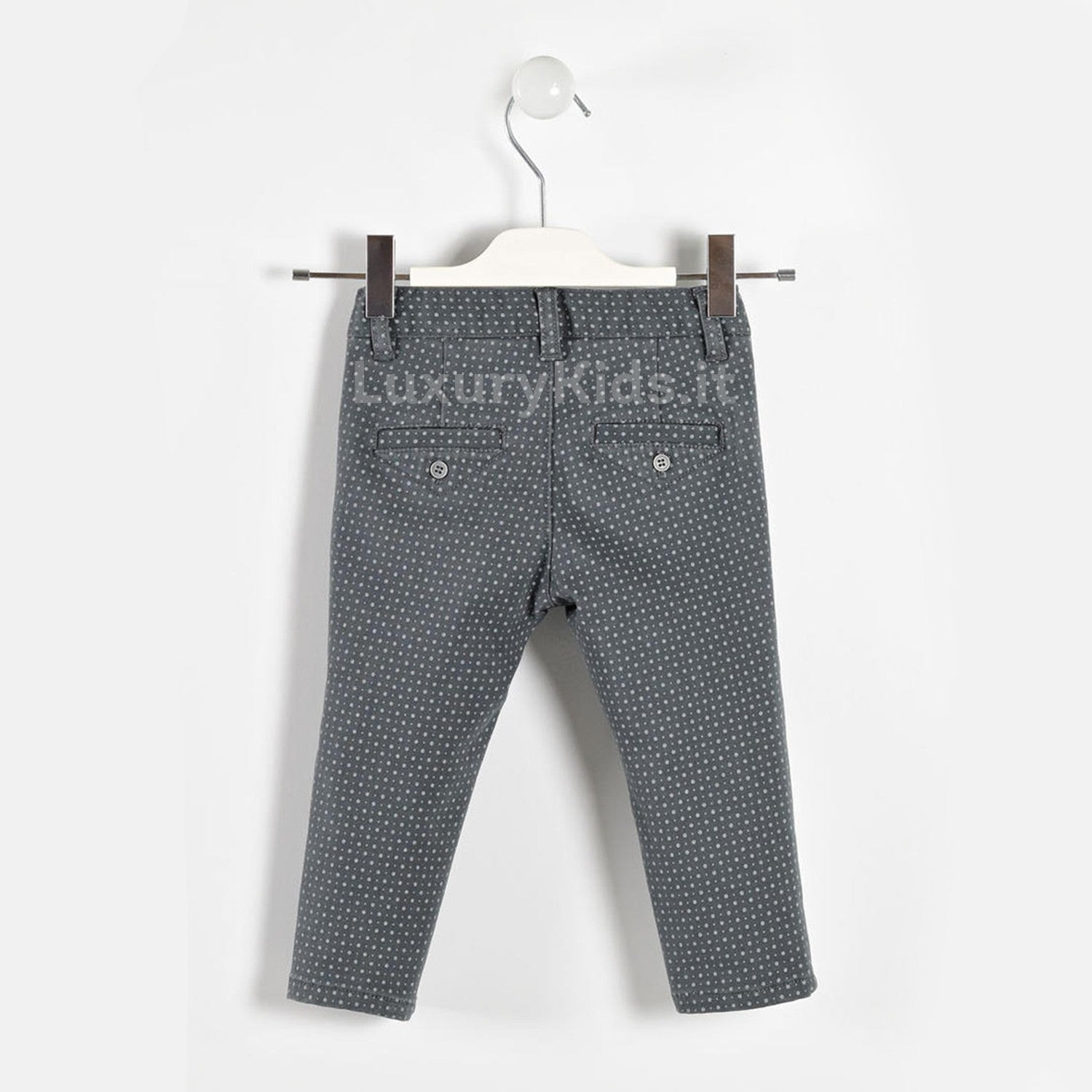 -Diese Hose besteht aus weichem Stretch-Baumwoll-Twill mit einem raffinierten Mikro-Tupfenmuster