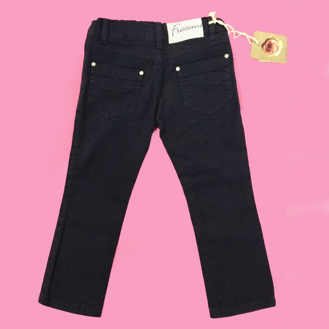 -Hose aus warmer blauer Baumwolle in einfarbigem, schmalem Modell mit elastischer Innenseite, mit der Sie die Passform anpassen können