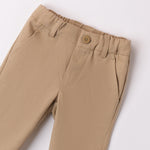 Questo pantalone lungo Minibanda per neonati è realizzato in morbido tessuto di lino e cotone. La vita regolabile con elastico interno offre massimo comfort e le tasche laterali sono comode per riporre i piccoli oggetti. Disponibile in un'elegante fantasia tinta unita.