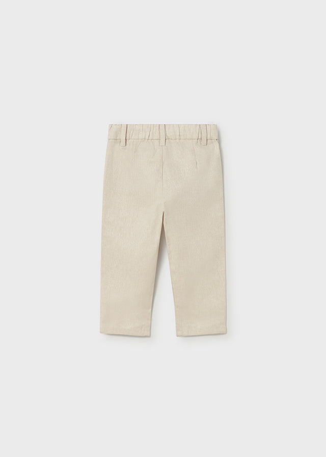 Pantalone lungo realizzato in misto lino, perfetto per i neonati durante i mesi più caldi. Il tessuto naturale garantisce traspirabilità e comfort, permettendo alla pelle delicata del bambino di respirare liberamente. Il design semplice e versatile si abbina facilmente con qualsiasi capo, mentre la vestibilità comoda assicura libertà di movimento. Ideale per creare look eleganti e sofisticati, mantenendo il benessere del piccolo in ogni occasione.