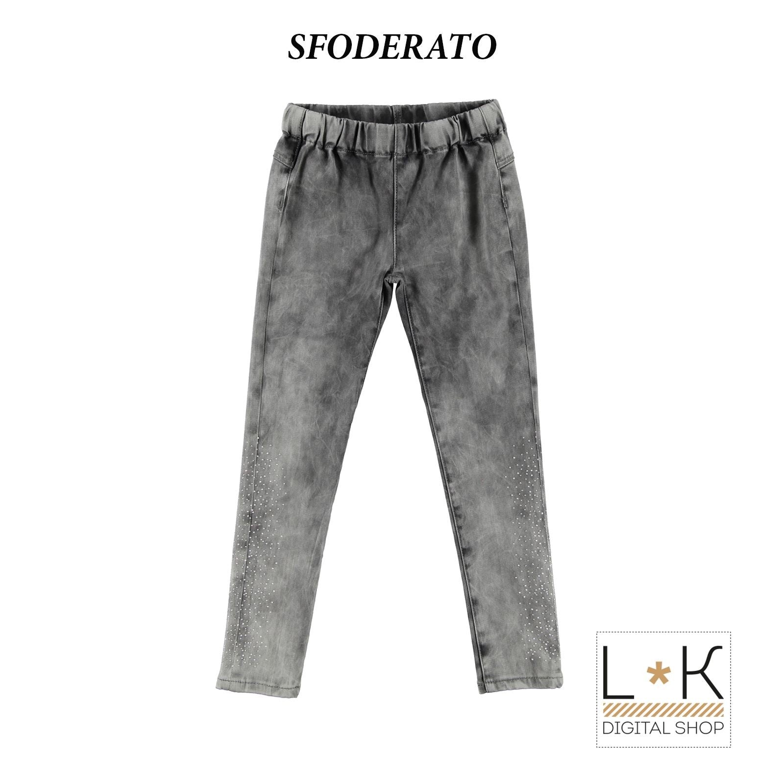 Graue Slim-Fit-Hose mit Strassapplikationen an den Beinen und elastischem Bund
