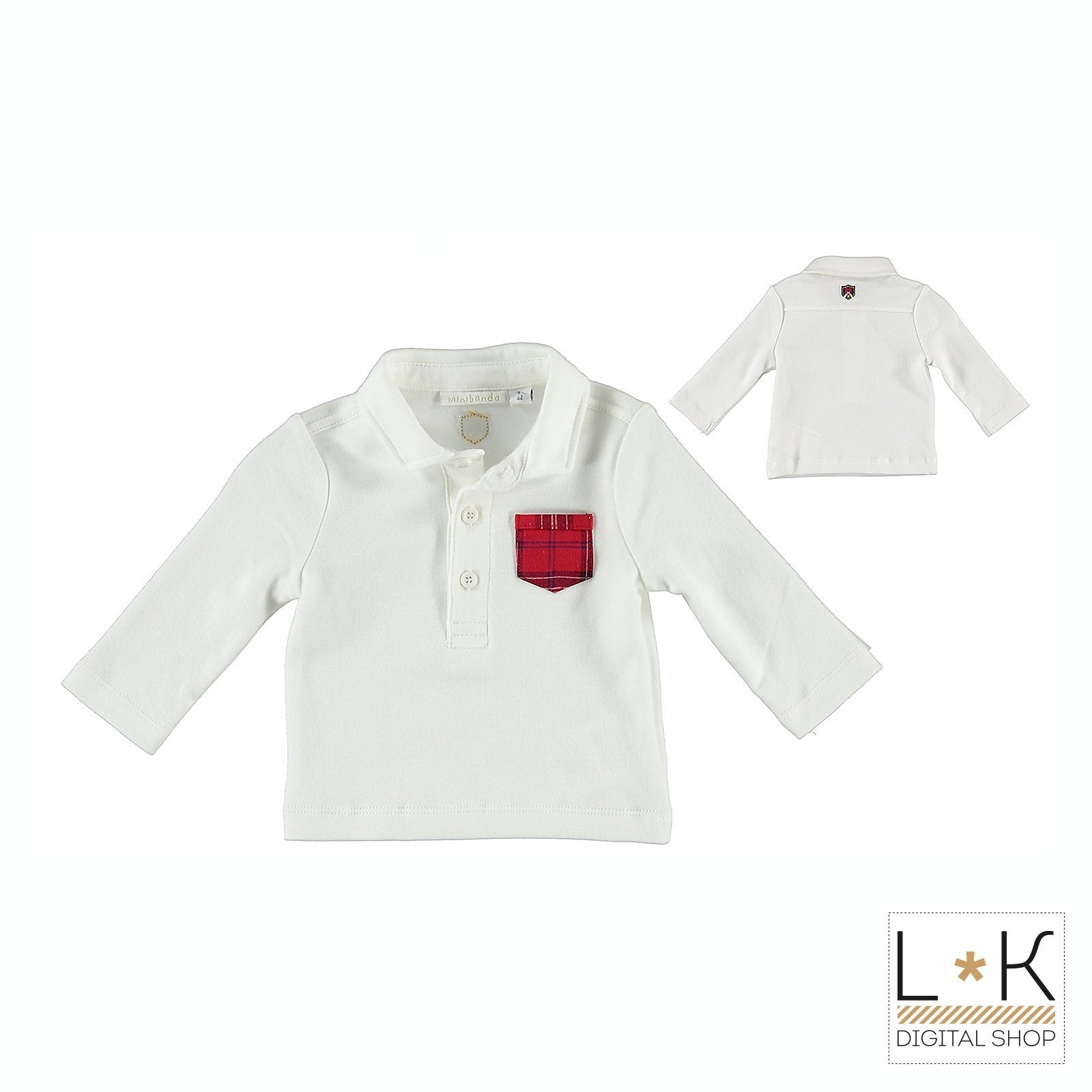 Einfarbiges Poloshirt aus weißer Baumwolle mit roter Tasche und Knopfverschluss
