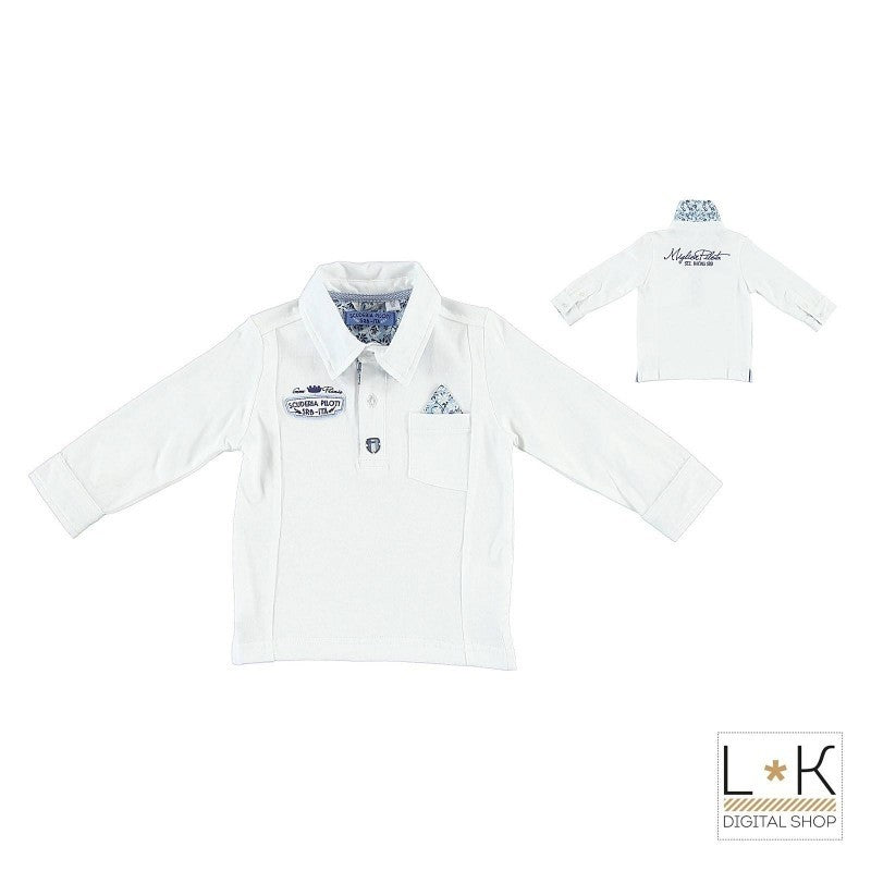 Poloshirt aus einfarbiger Baumwolle mit Stickerei und Brusttasche mit Pochette mit Blumendruck und Verschluss mit zwei Knöpfen.