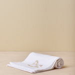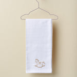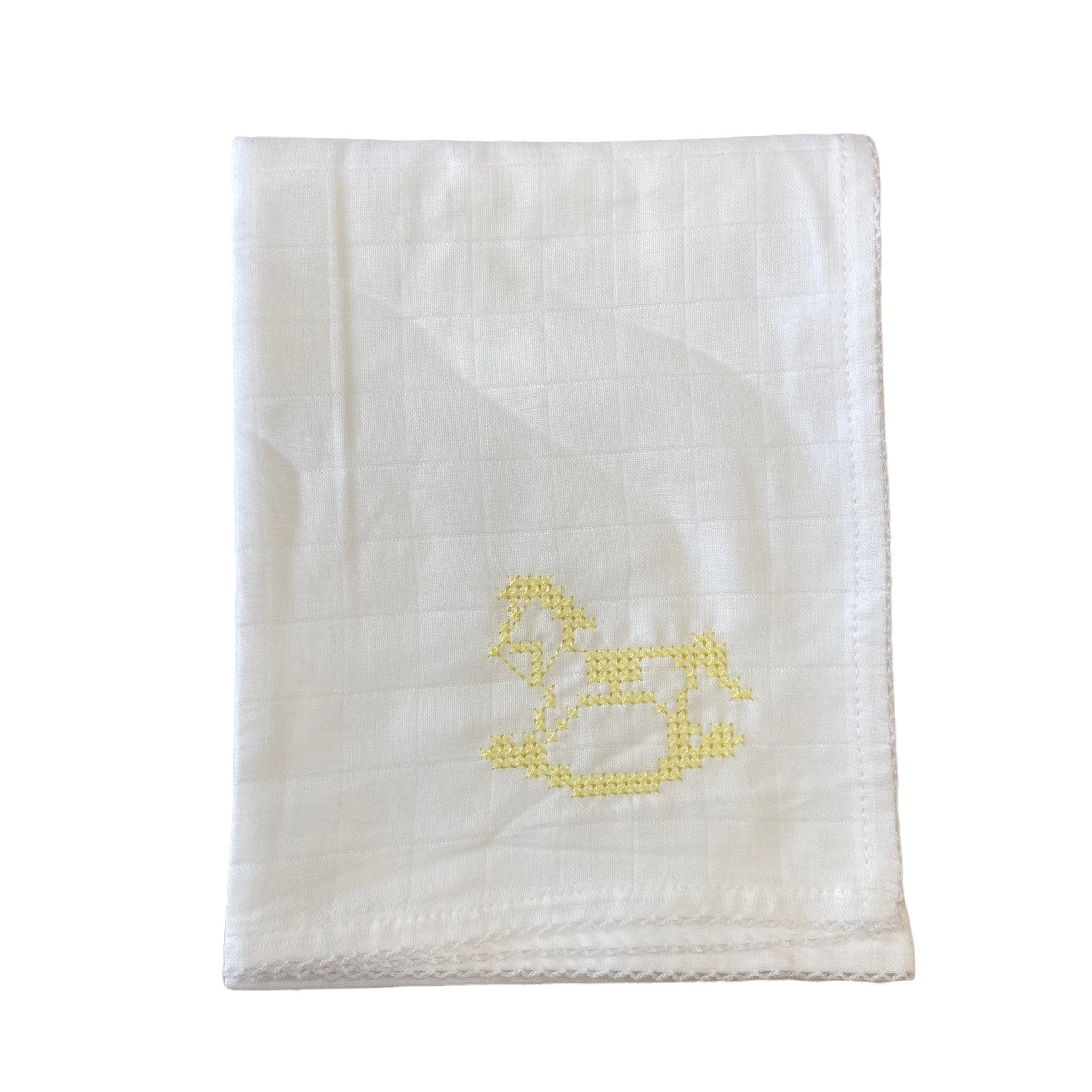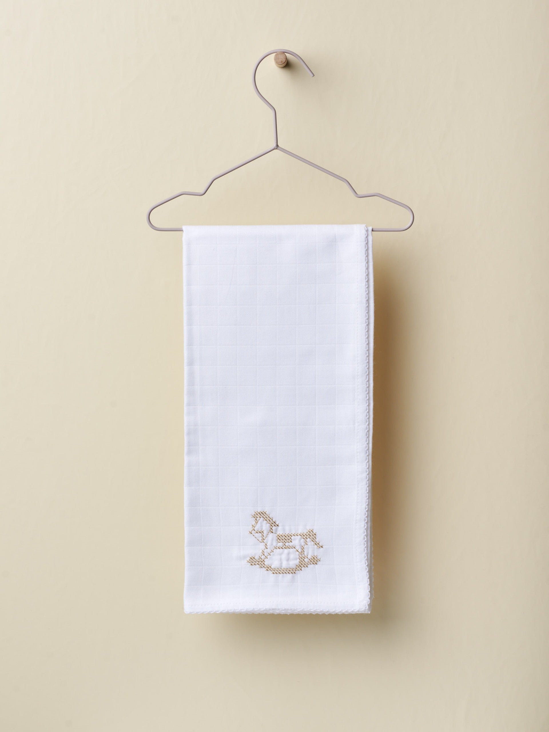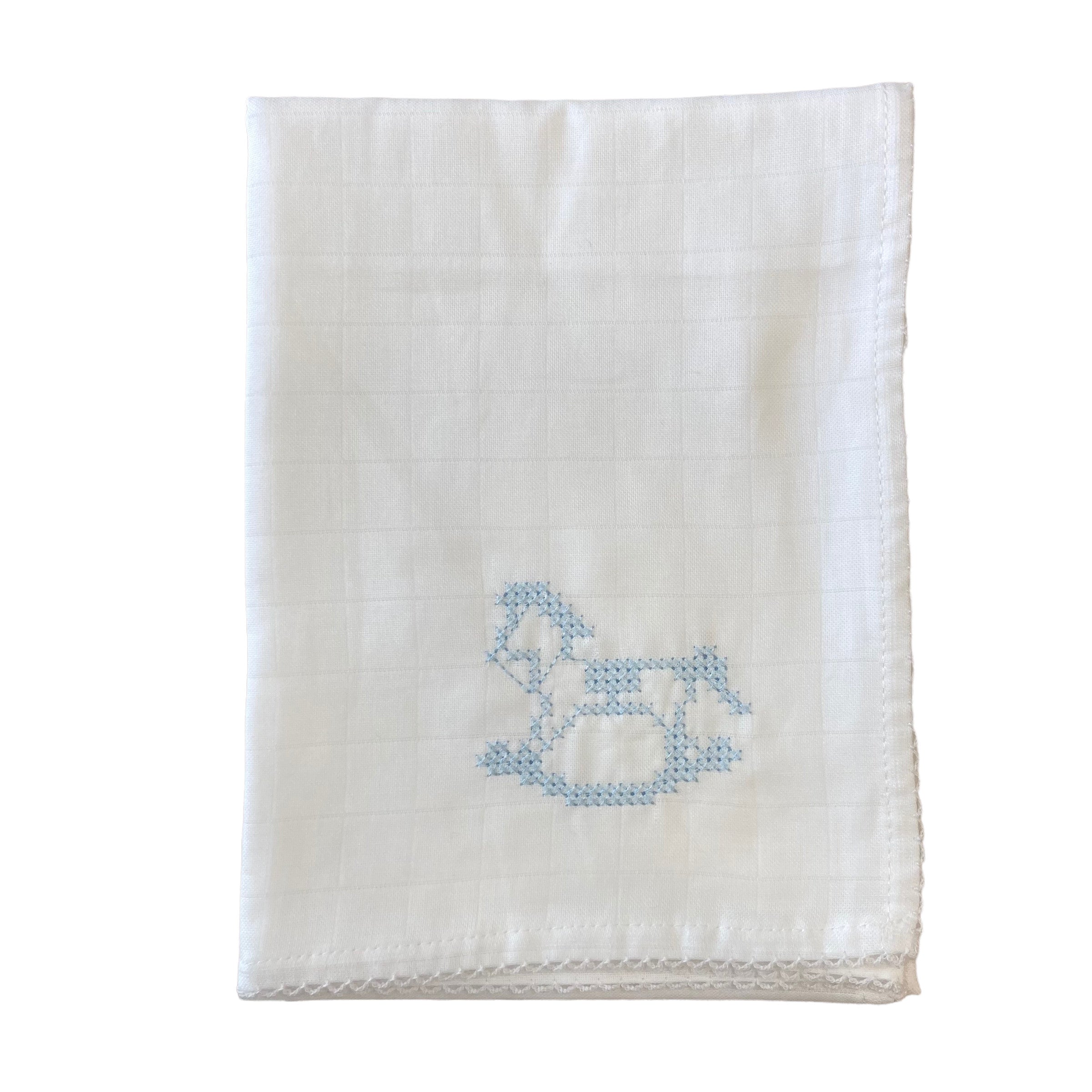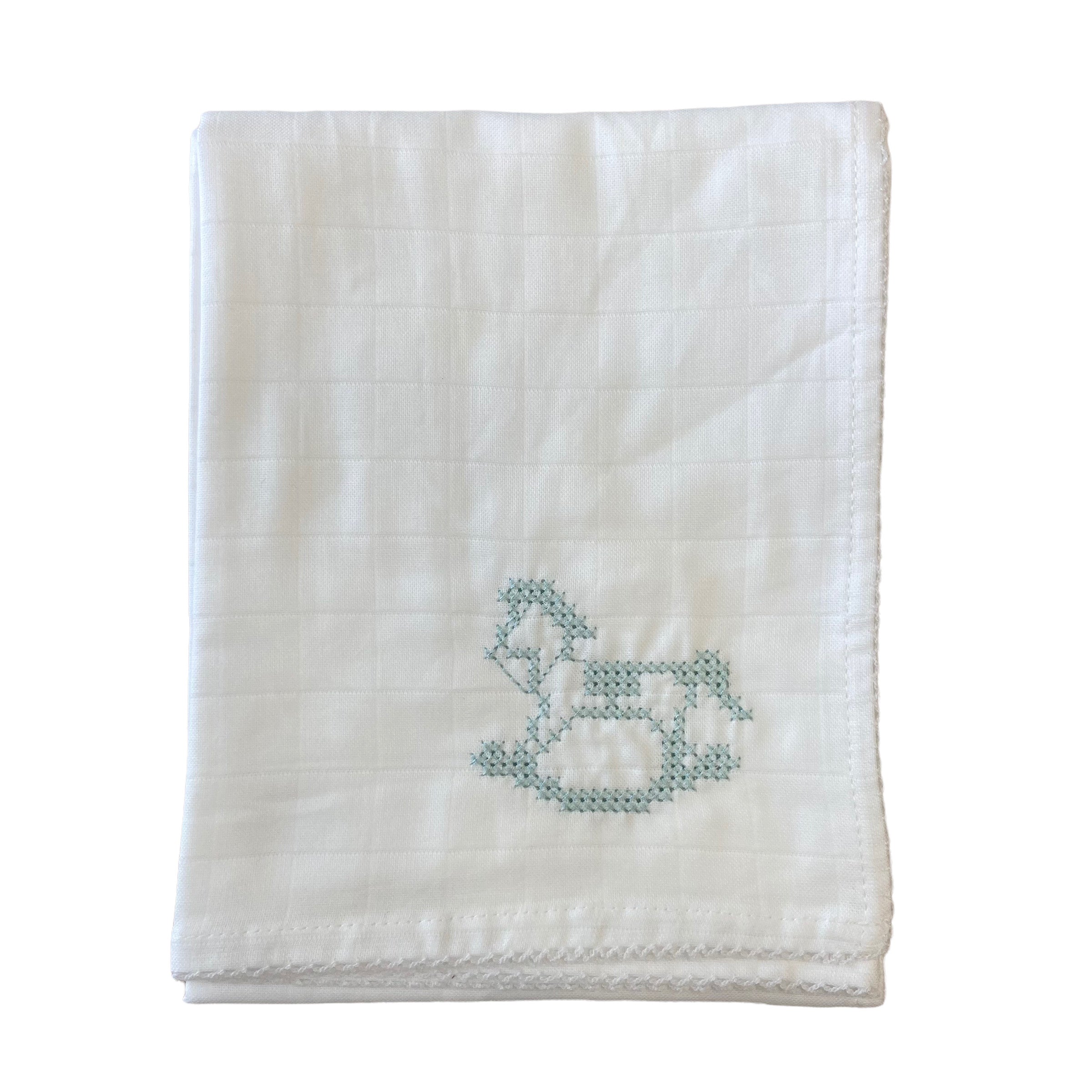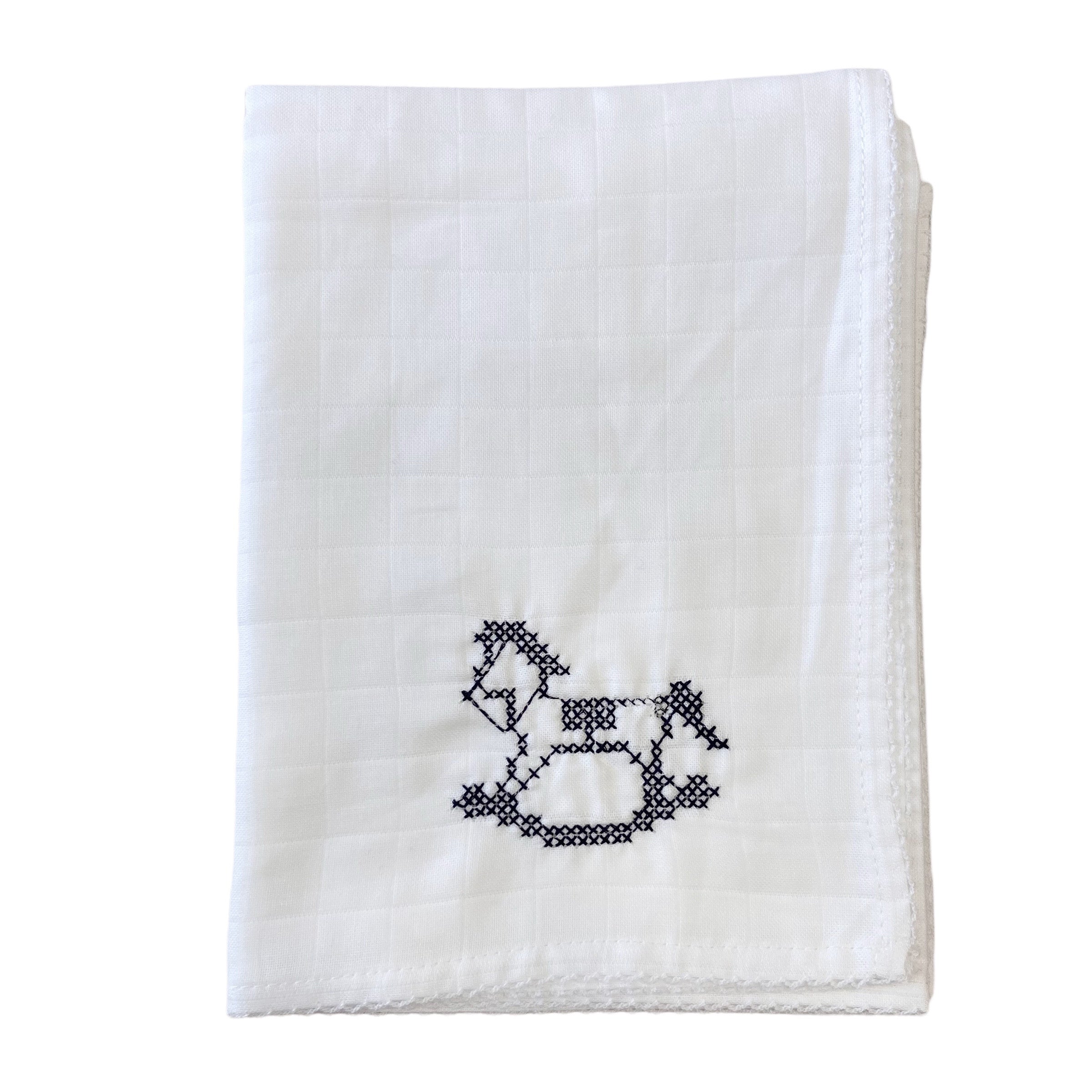Cooles Baumwollgaze-Quadrat mit gesticktem Schaukelpferd-Design für Sie und Ihn und gestickter Bordüre.