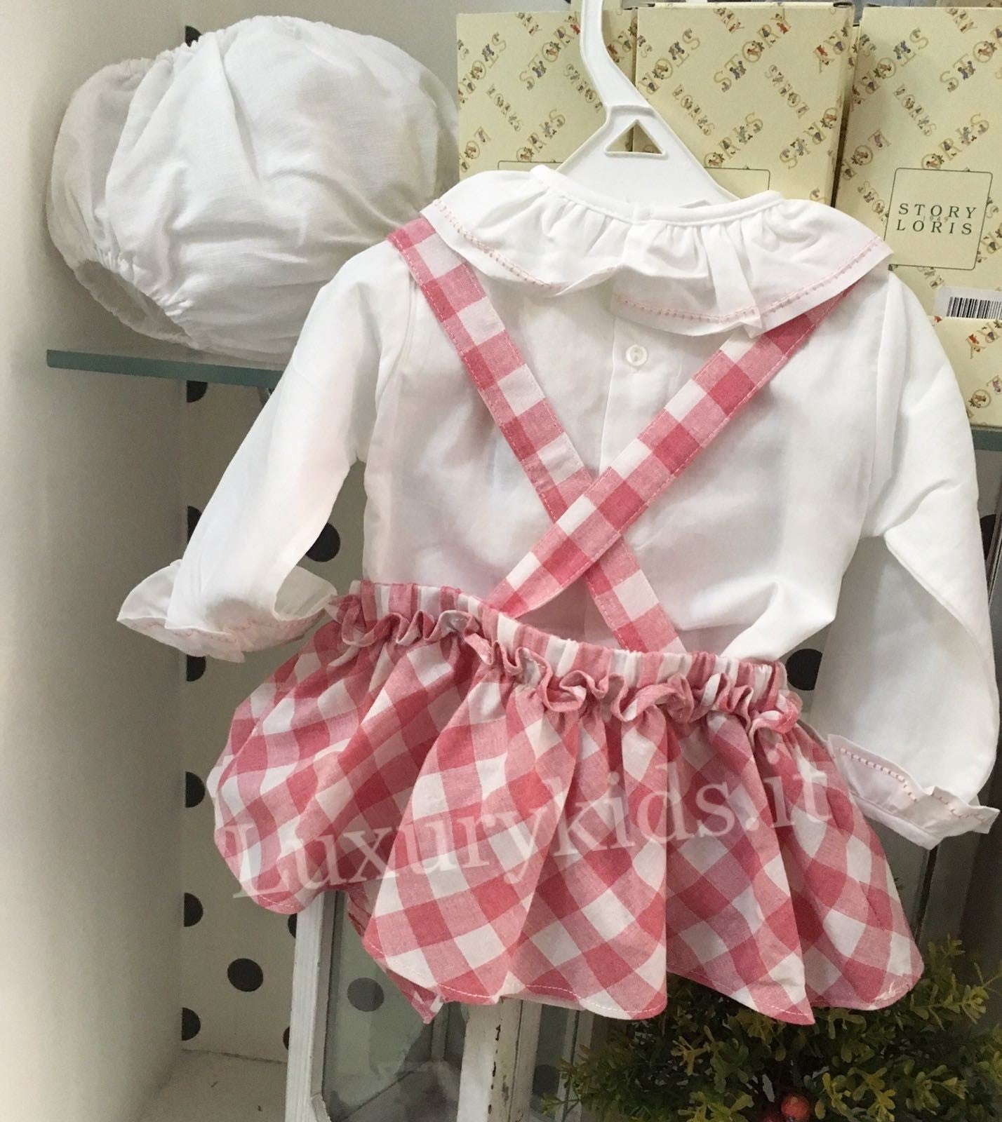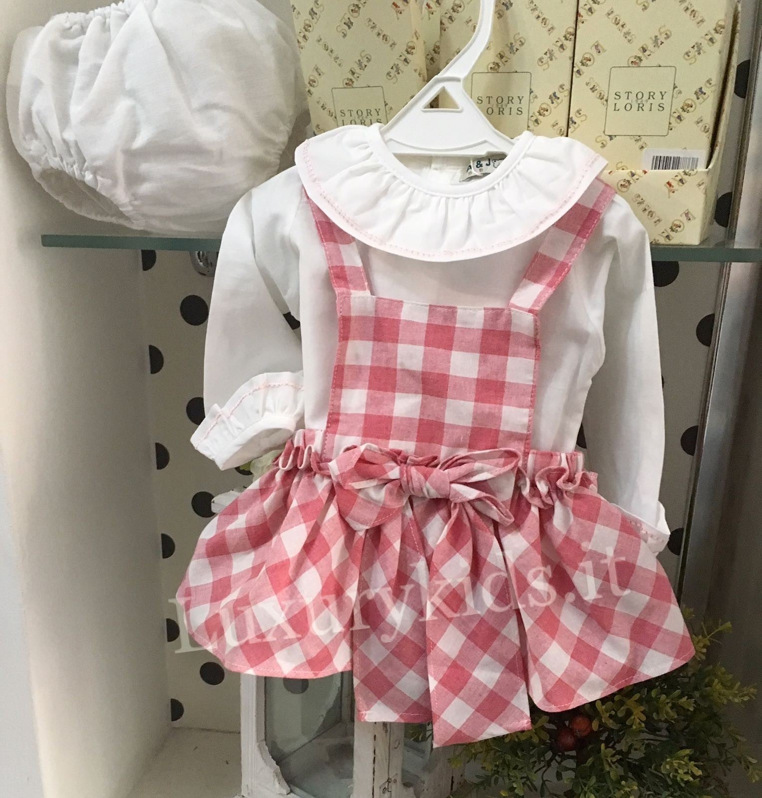 Salopetta con Gonna e Culotte in Cotone a Quadretti Rosa-Bianco Neonata Paloma de la O CV8CJ1 - PALOMA DE LA O - LuxuryKids
