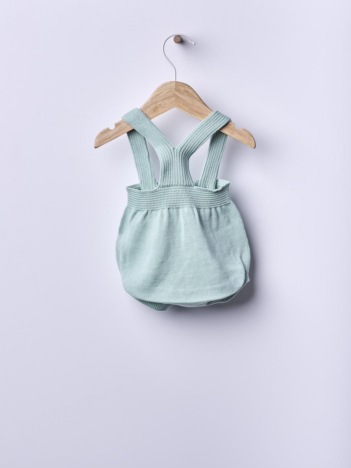 Salopette con spalline lavorate a maglia fine in morbido e traspirante cotone biologico, ideale per neonati maschi e femmine. Salopette ROMANTIC SPRING DAY si allaccia sul davanti alle spalline con bottoni in madreperla. Prodotto in Wholegarment, un pezzo unico senza cuciture, per il massimo comfort del tuo bambino.