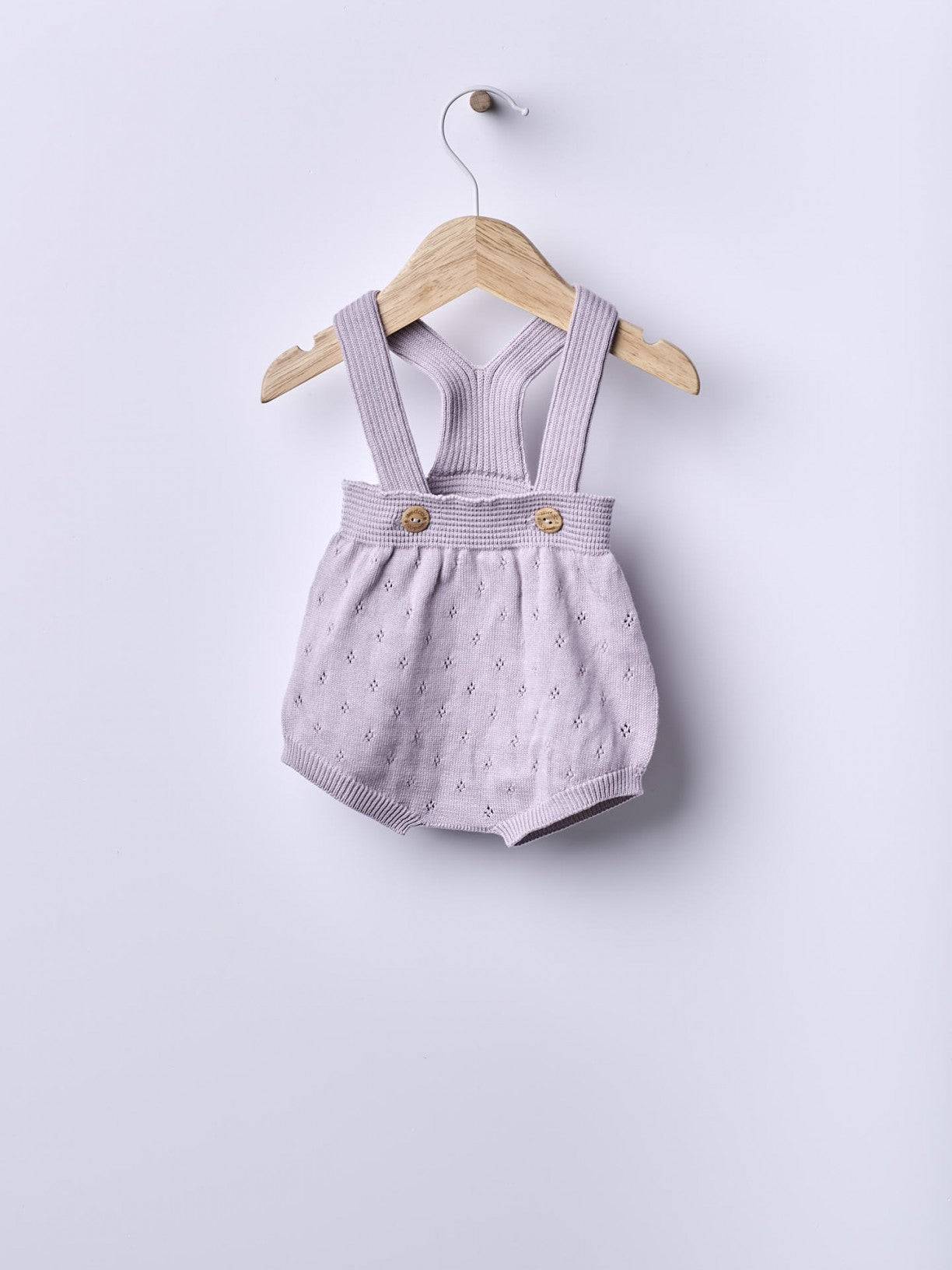 Salopette con spalline lavorate a maglia in morbido e traspirante cotone biologico. La salopette BREEZE si allaccia sul davanti alle spalline con bottoni in legno. Prodotto in Wholegarment, un pezzo unico senza cuciture, per il massimo comfort del tuo bambino.