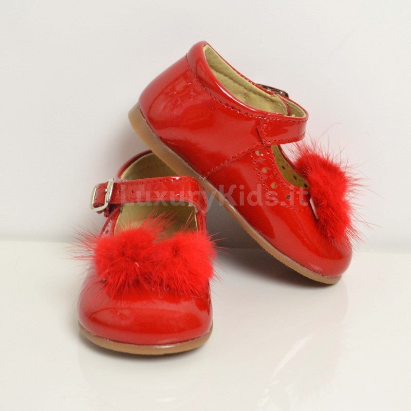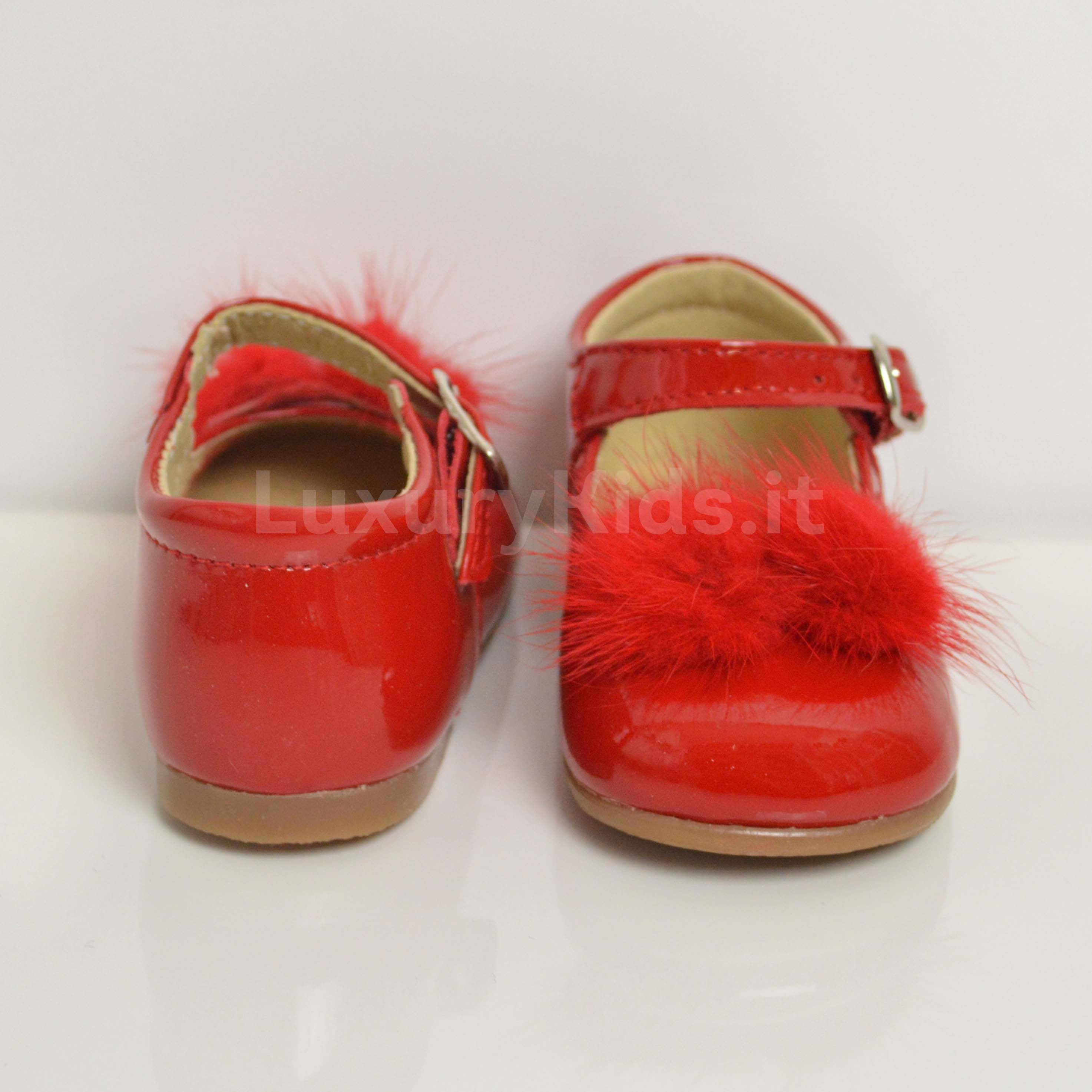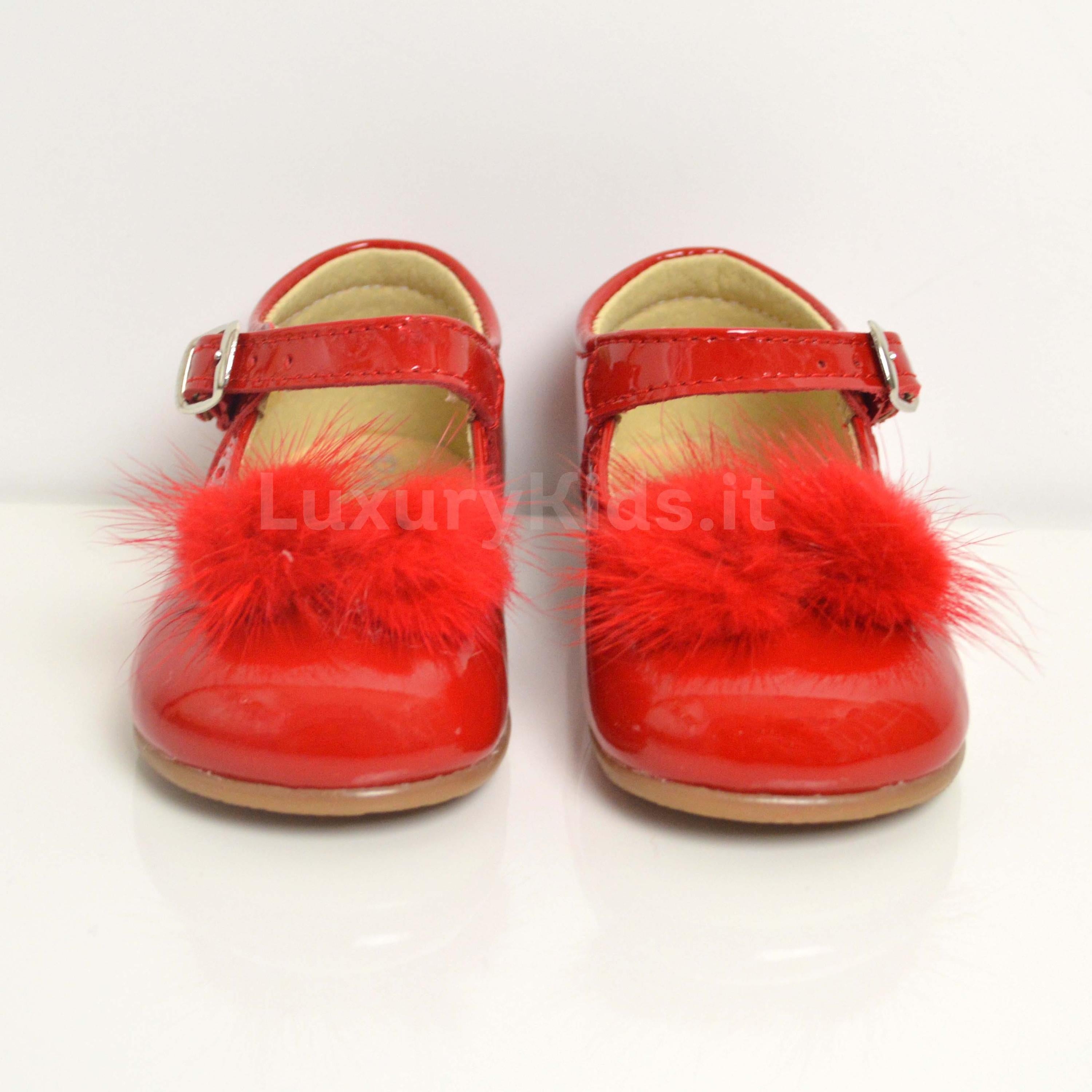 Scarpa A Bambolina Primi Passi Con Pon Pon in Vernice Rossa Bambina Panyno B2301R - PANYNO - LuxuryKids