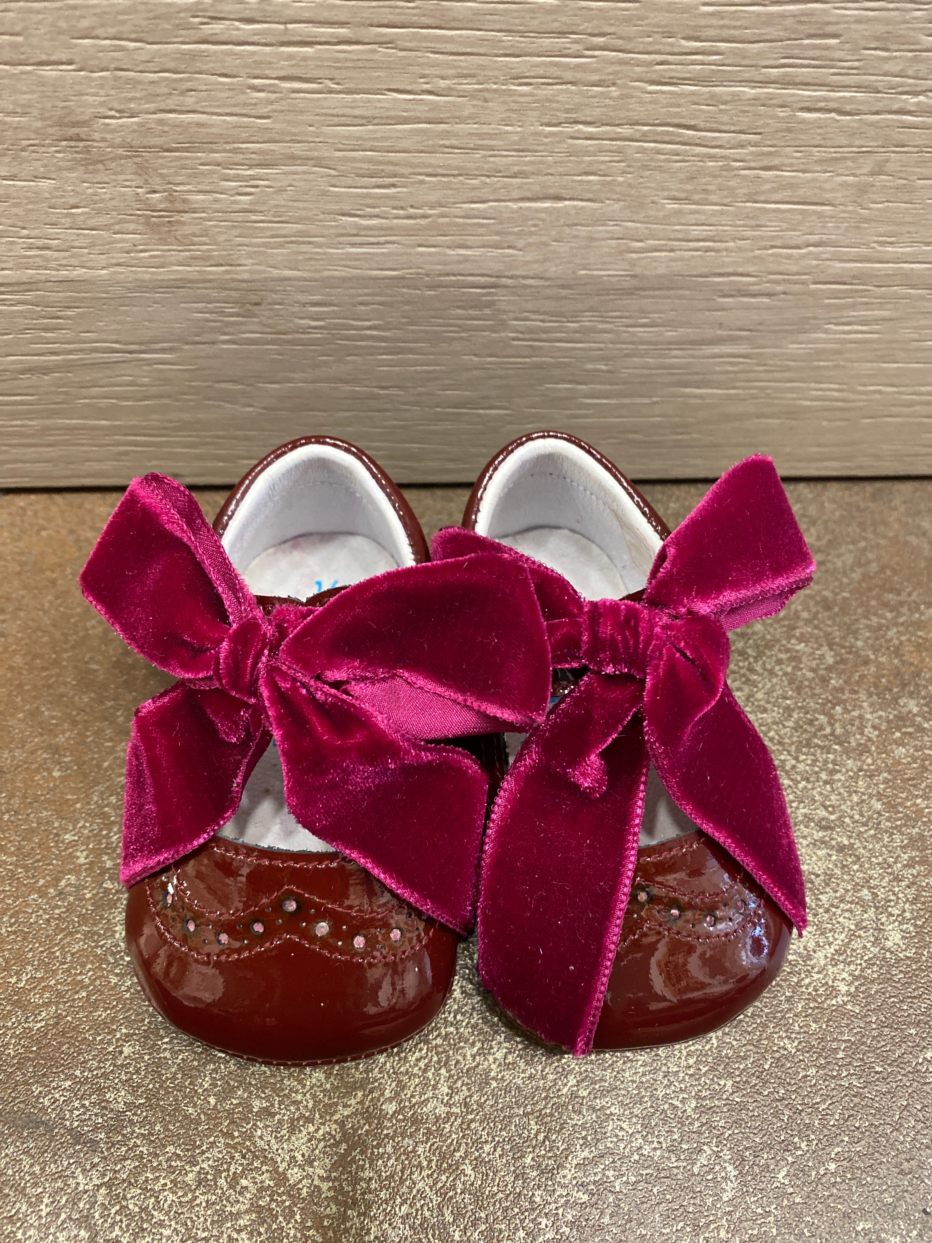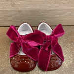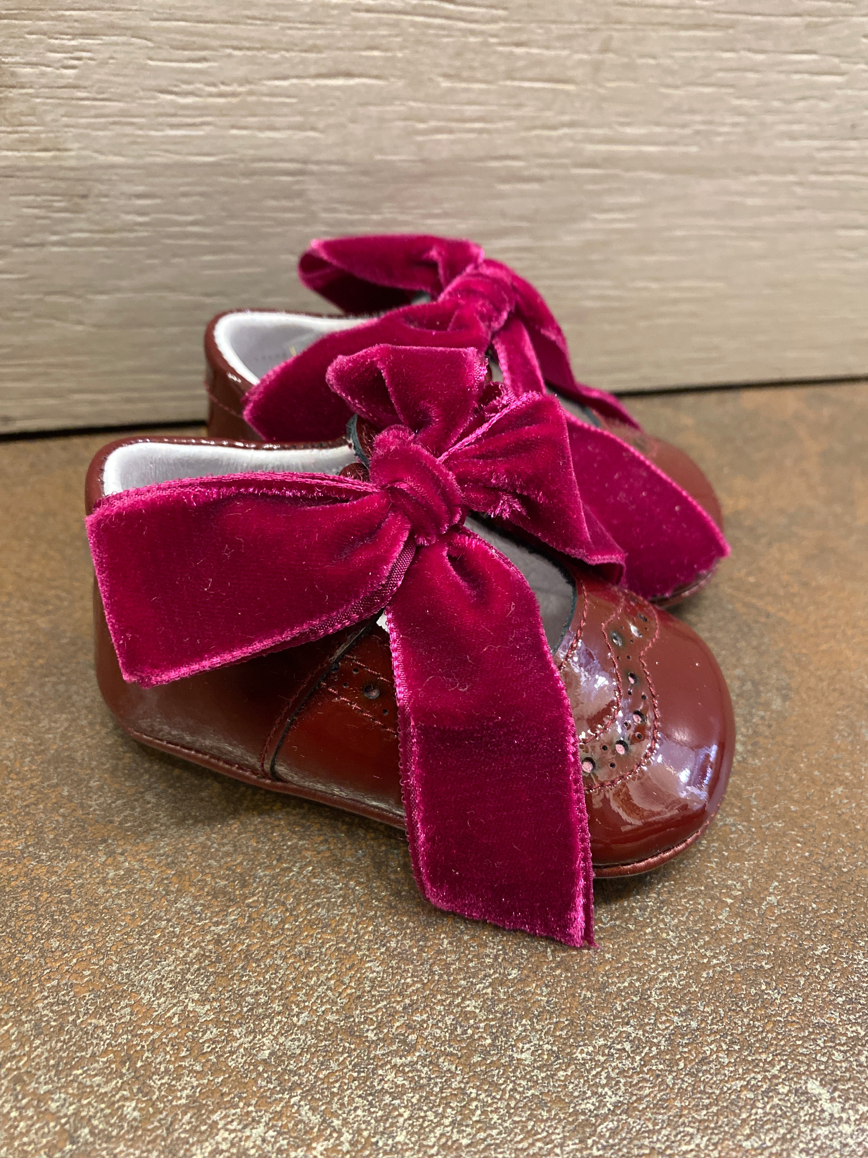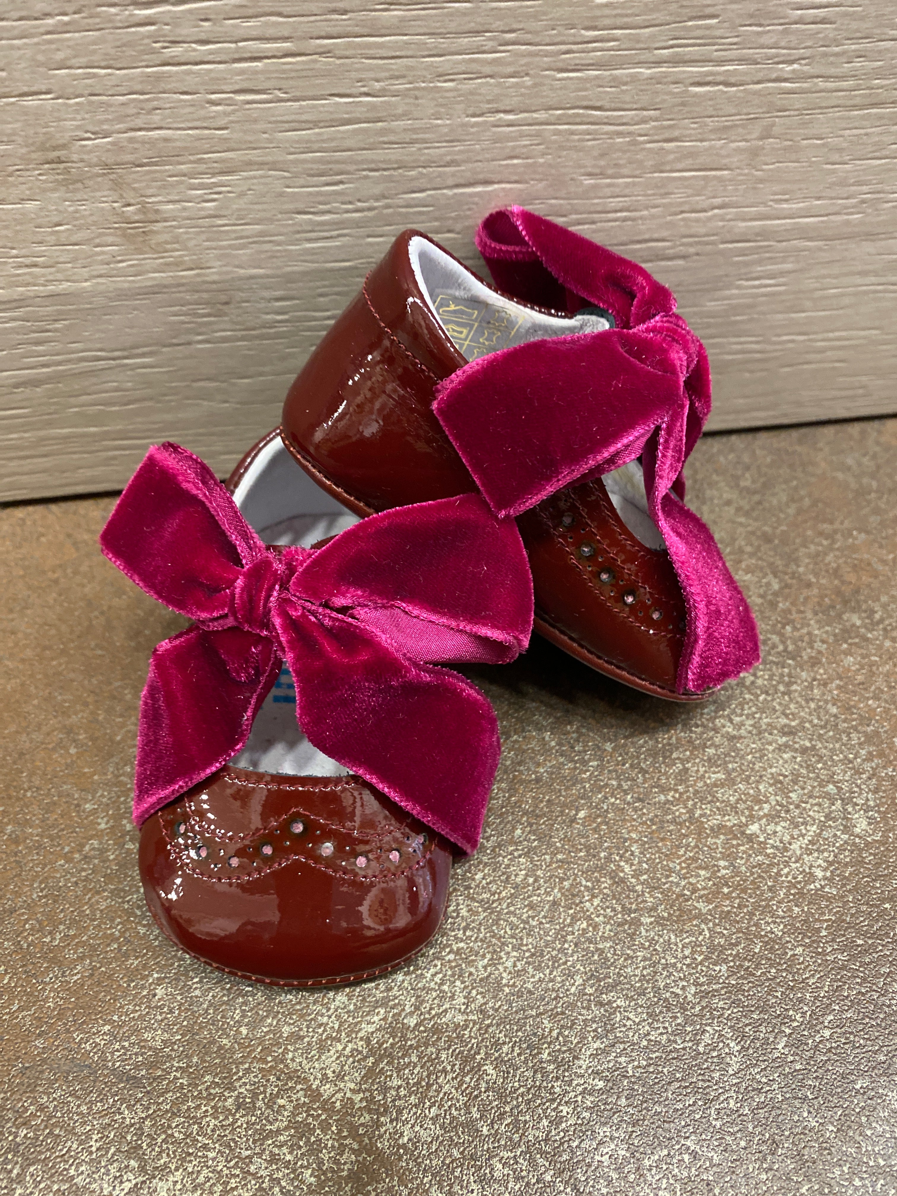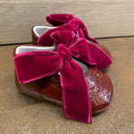 Ballerina-Krippenschuh mit Schleife aus neugeborenem Lackleder.