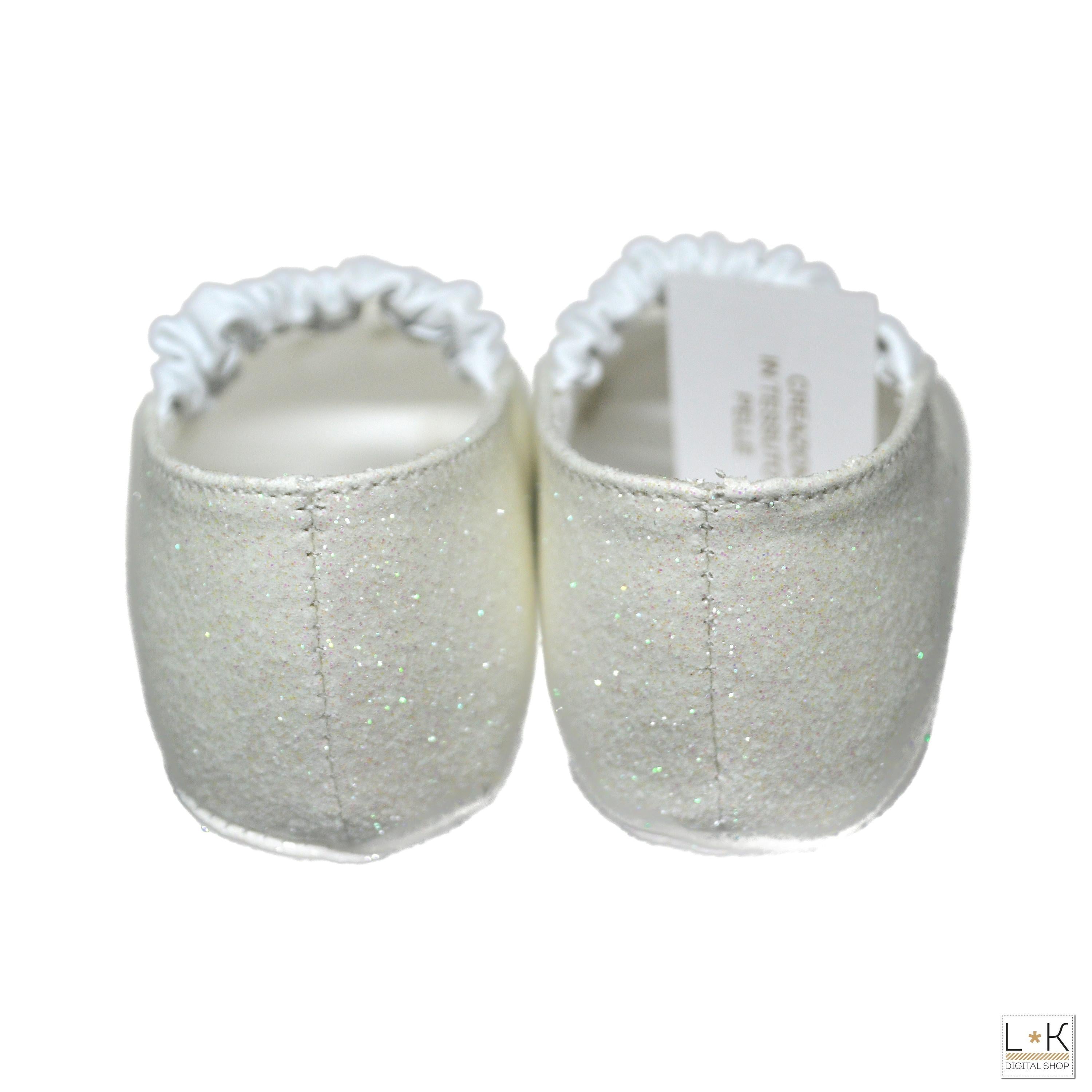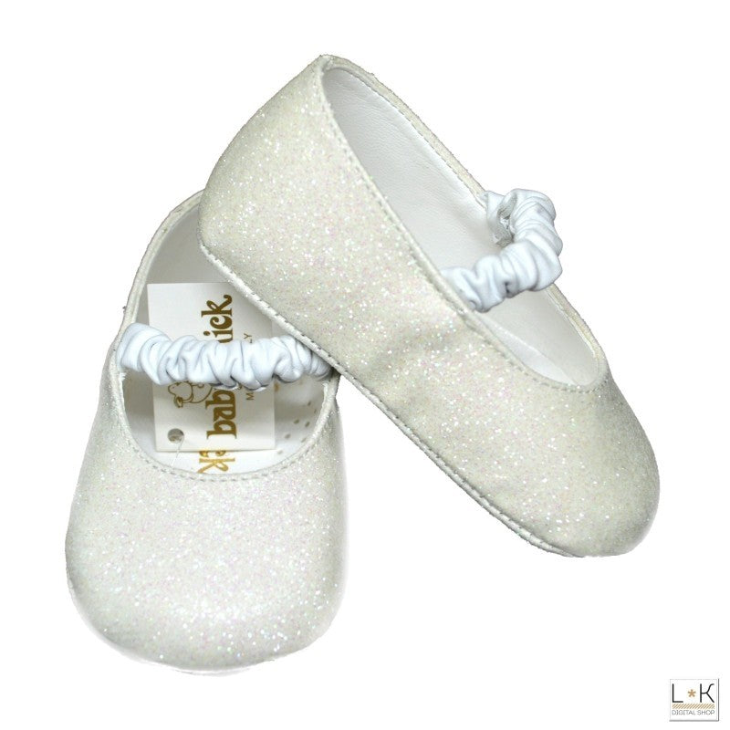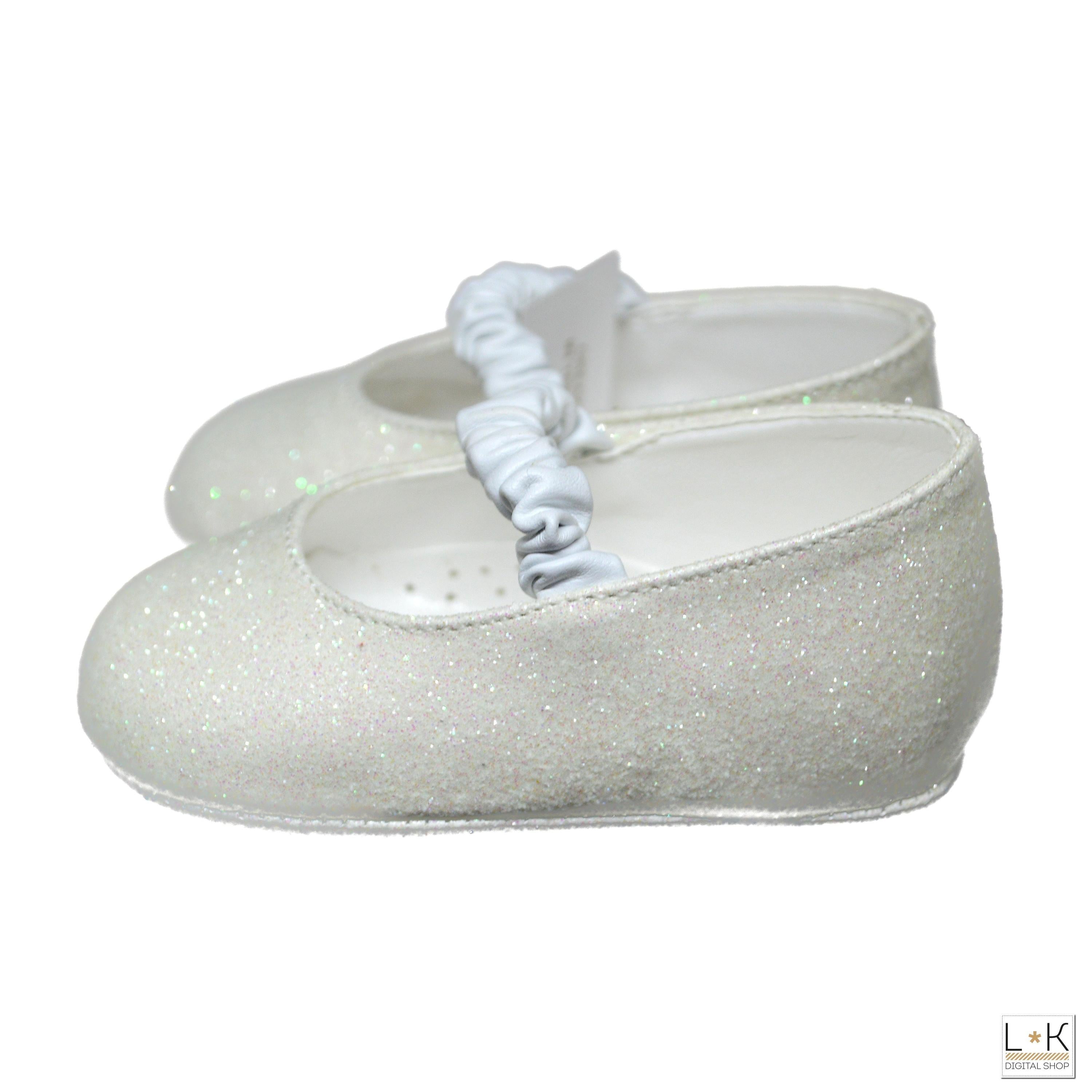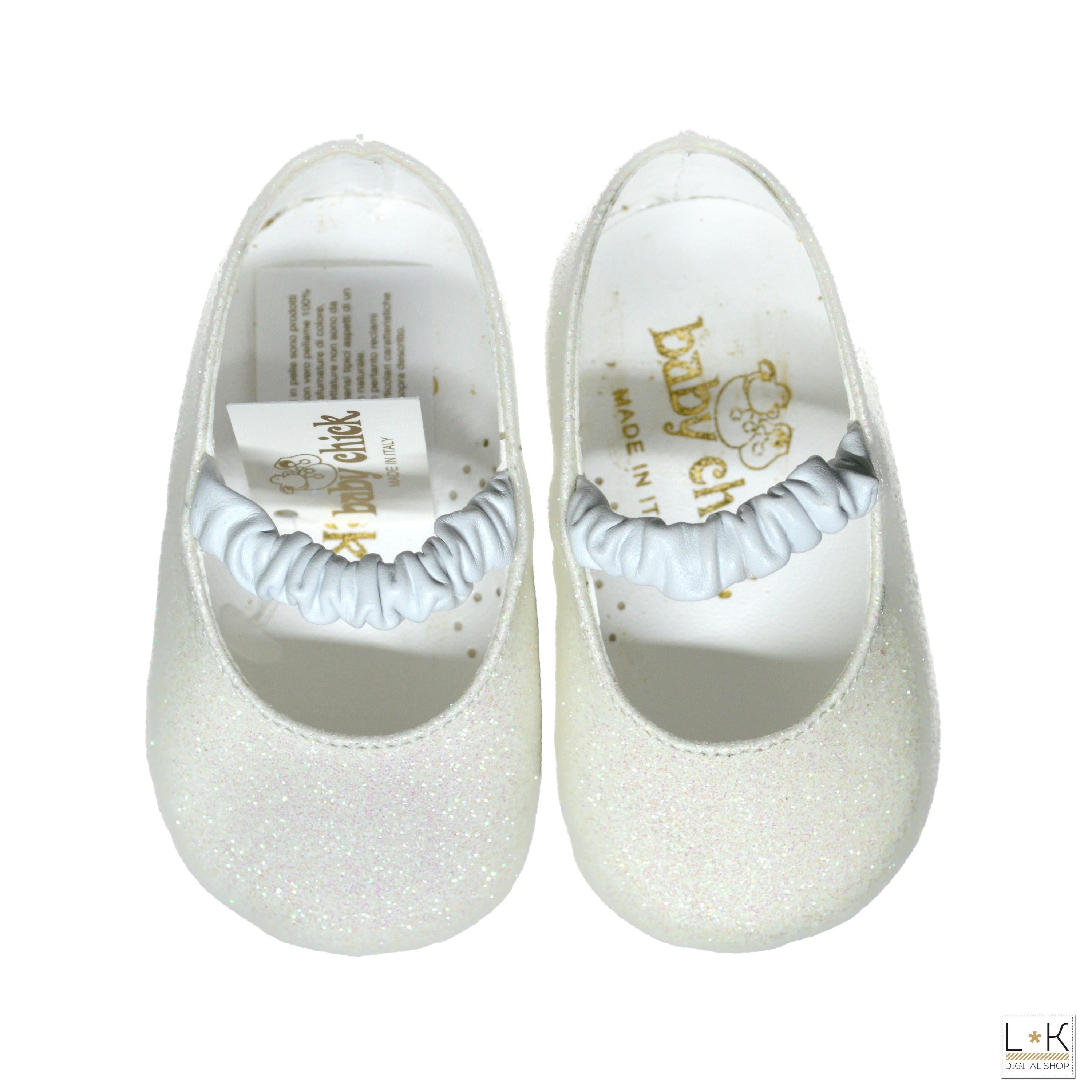 Ballerina aus echtem Leder 100 % Glitzer mit Riemchen auf dem Spann