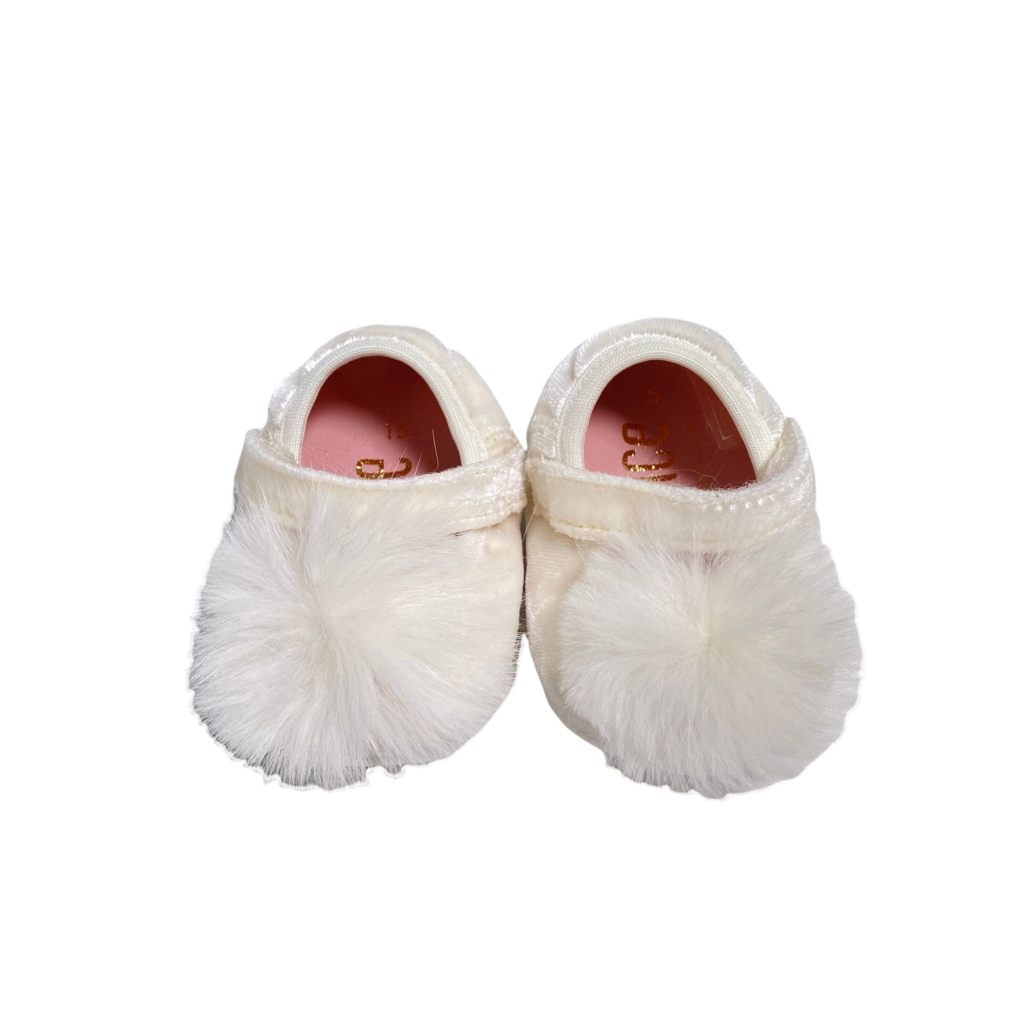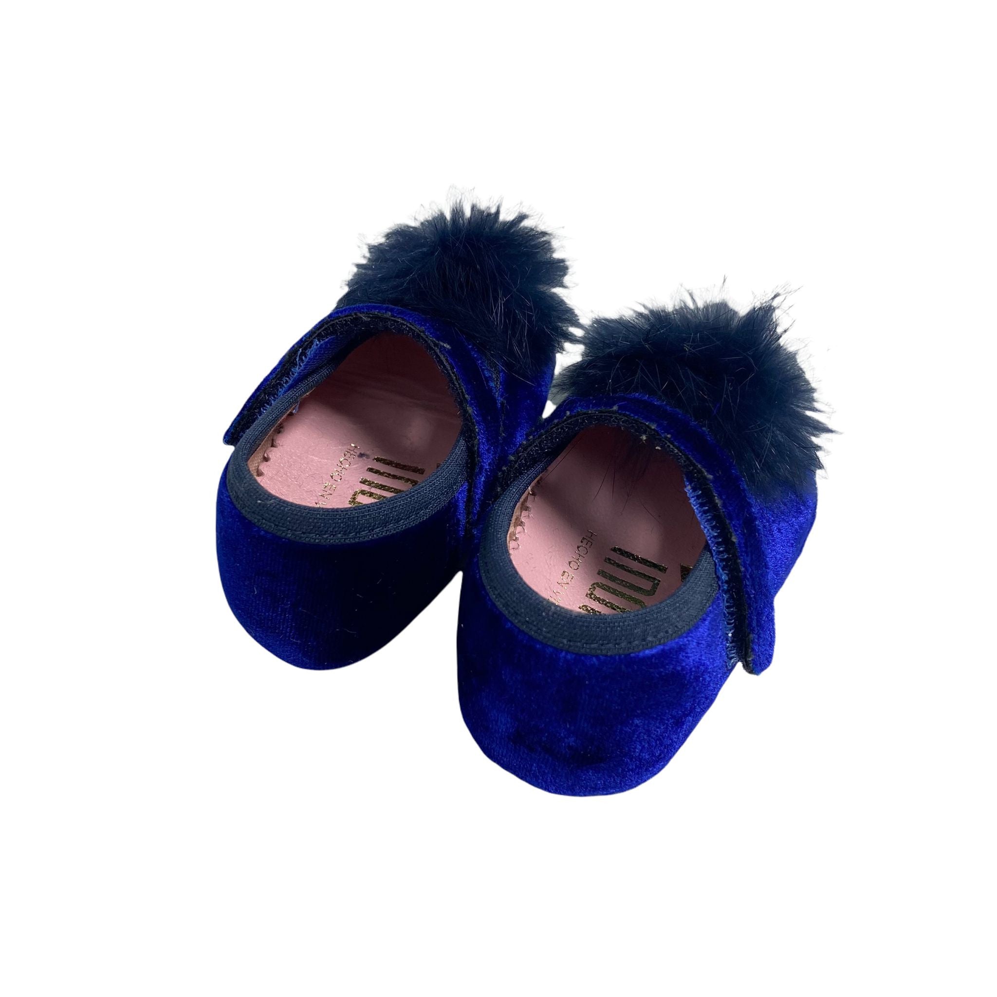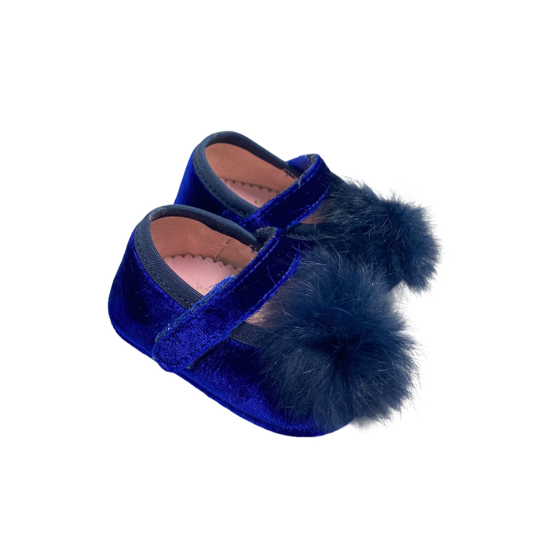 Ballerina Samt Wiegenschuhe mit Pom Poms.