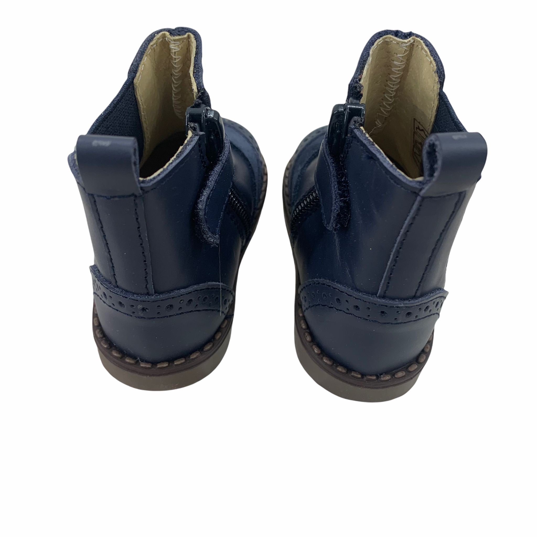 Kampfstiefel aus echtem Leder mit rutschfester Sohle, Reißverschluss und Gummizug an der Seite.