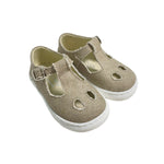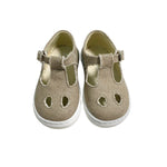 Scarpe primi passi con occhielli, in lino, con suola in gomma.