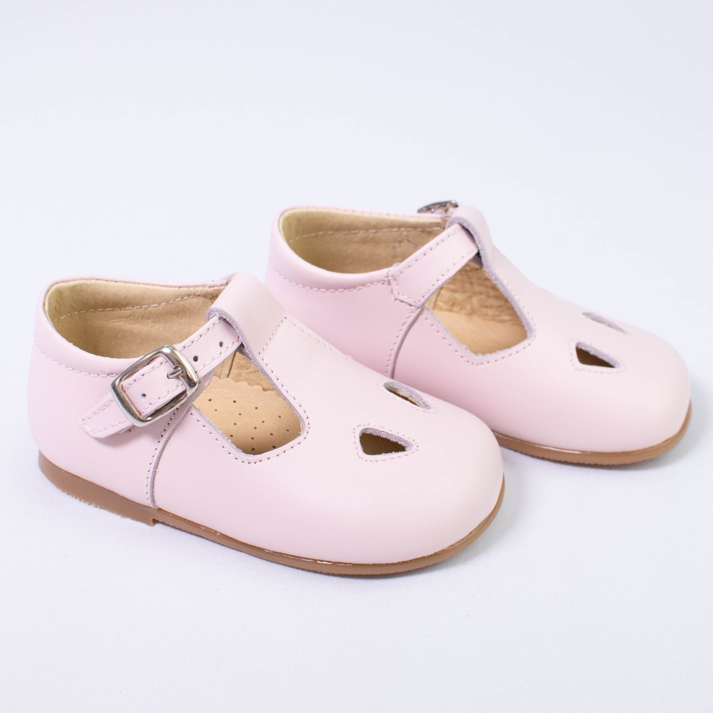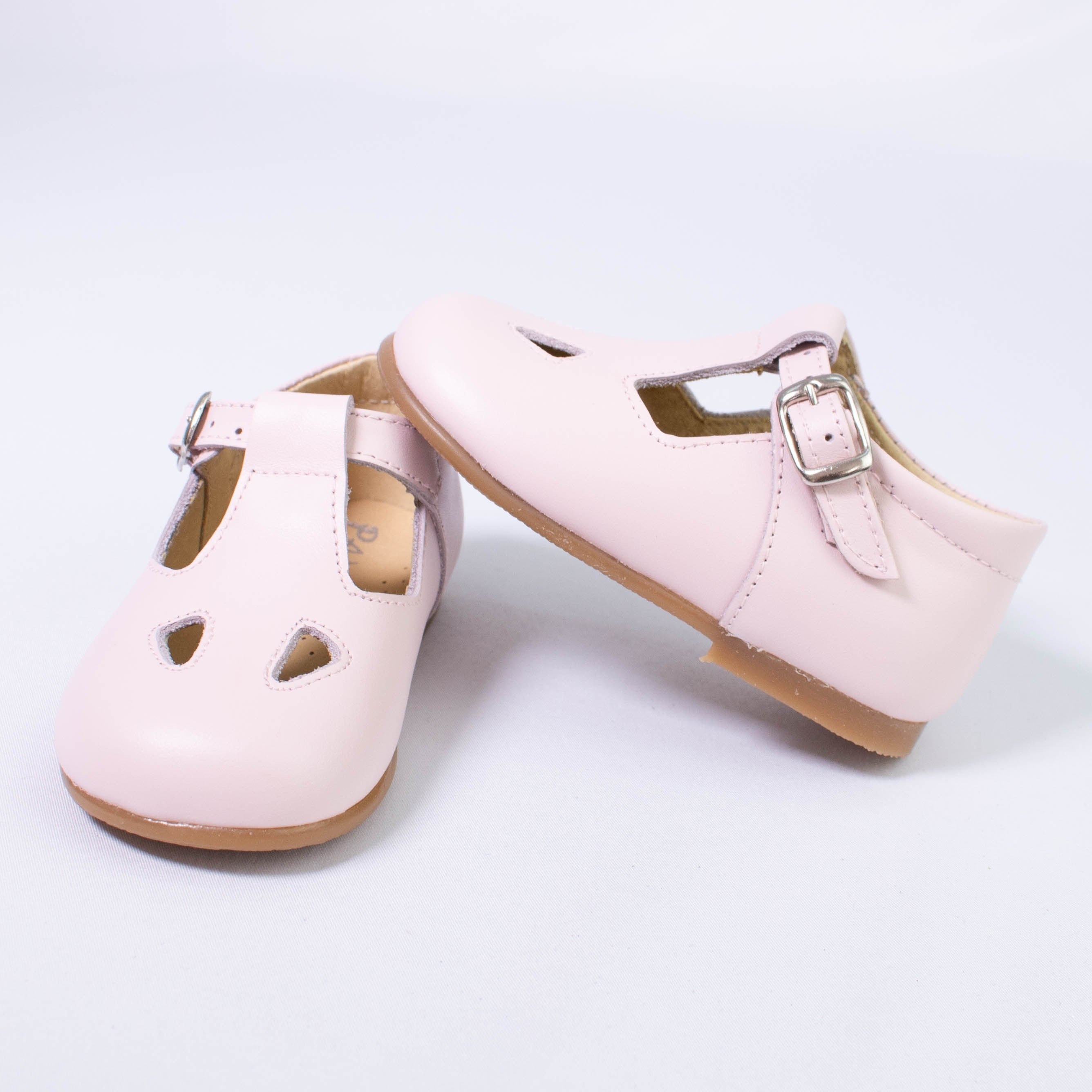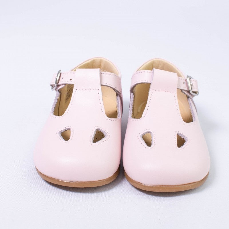 Schuhe für die ersten Schritte aus echtem Leder mit Ösen und Riemenverschluss.