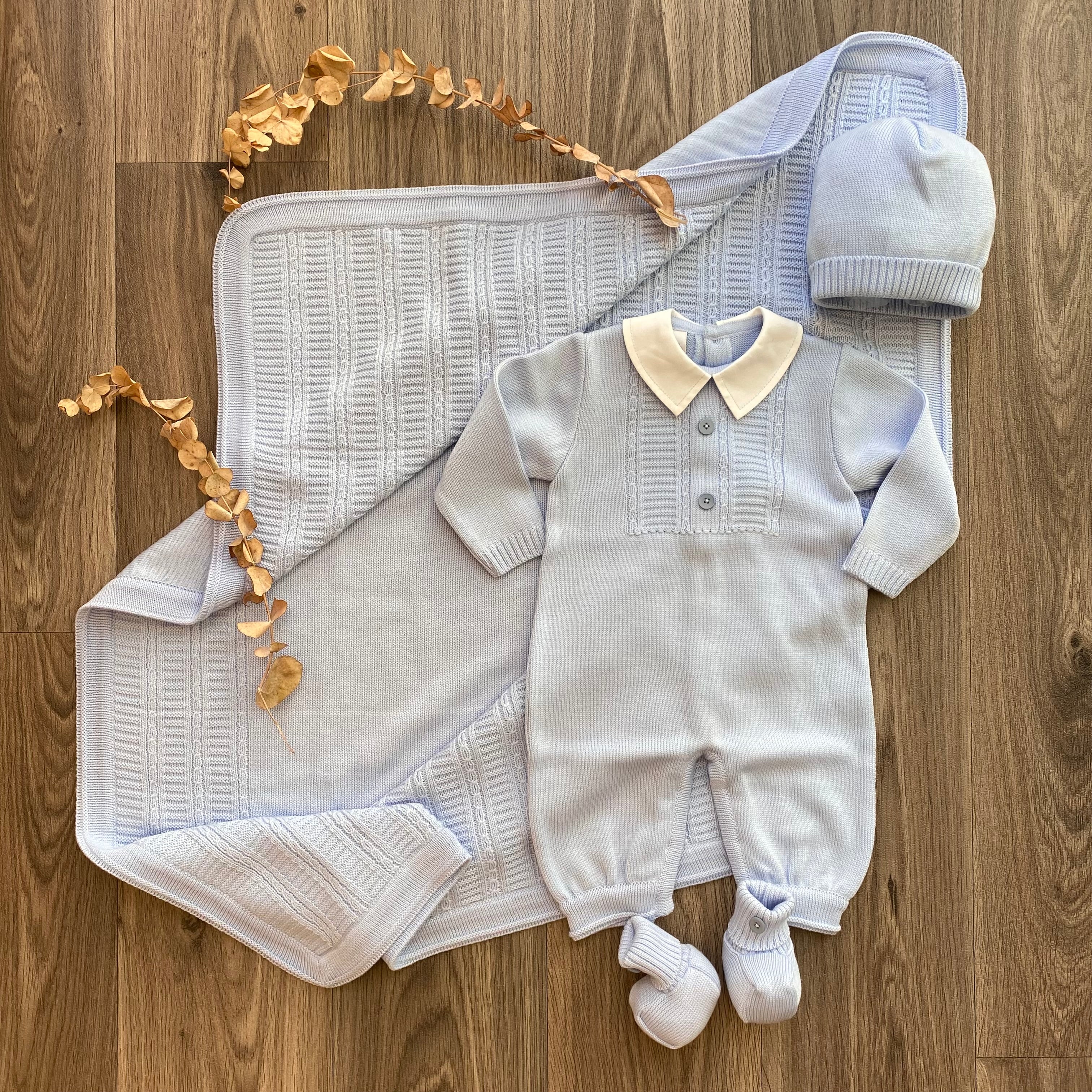 Set celeste in lana 100% made in italy ,composto da 4 pezzi: